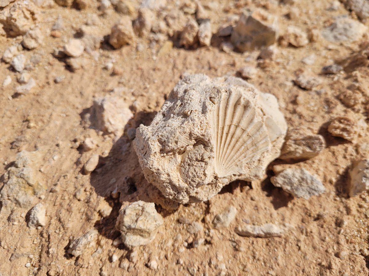 I tady, téměř 300 kilometrů k nejbližšímu pobřeží jsou k vidění pozůstatky moře. Jsou zde obří bílé plotny, které jsou složené pouze z jemného pouštního písku a pravěkých zkamenělin. Každý kámen, který beru do ruky, je pozůstatkem tvora žijícího před mnoha lety.