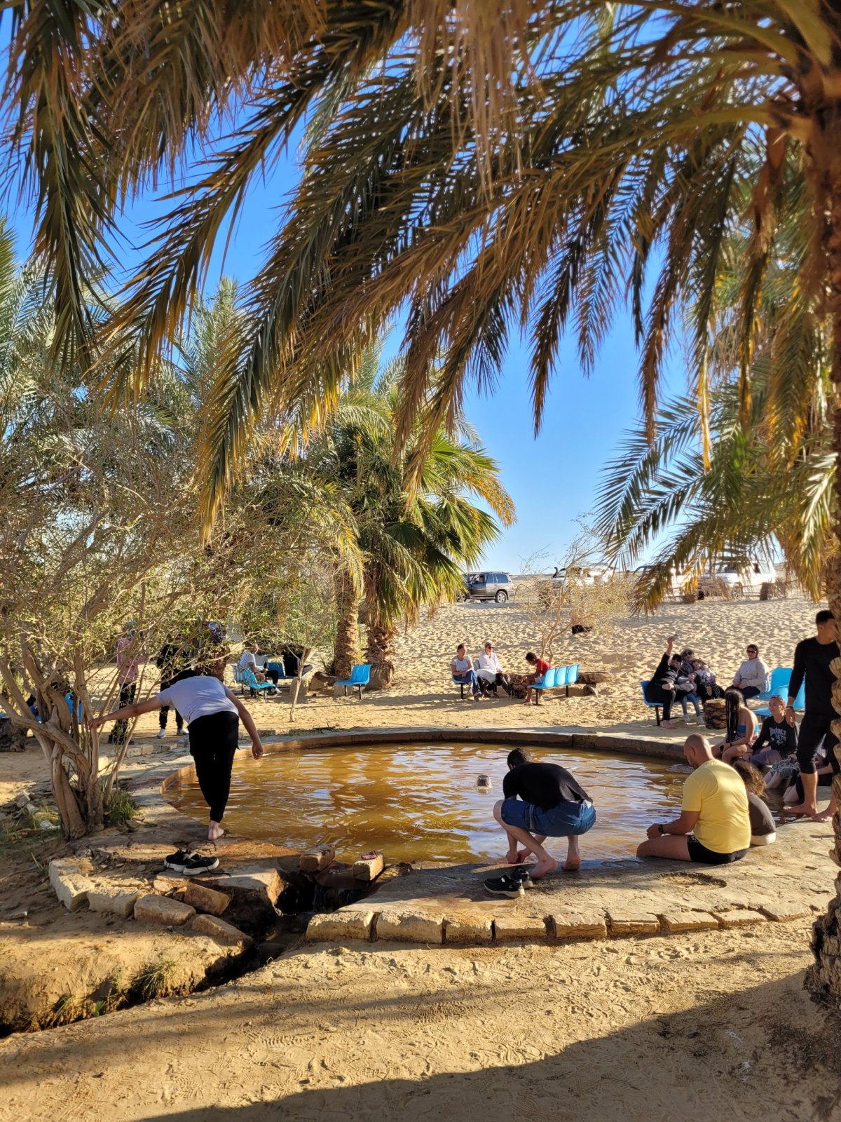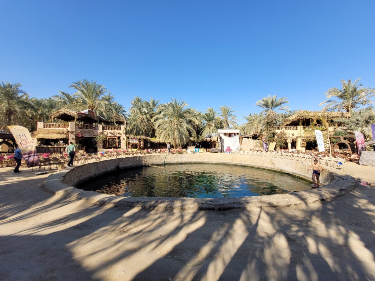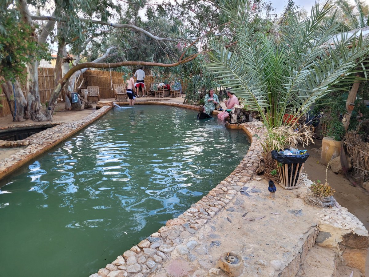 Siwa je zajímavá tím, že je na jednom relativně malém území vedle sebe slaná a sladká voda. Jen necelý kilometr od velikého slaného jezera volíme k další koupačce Almaza Hot Spring. Voda zde má asi 41°C. Podobných míst je přitom v Siwě více. Zde se odsolujeme a už nic dalšího nevymýšlíme. Těšíme se na večeři, kterou máme domluvenu v našem ubytování.