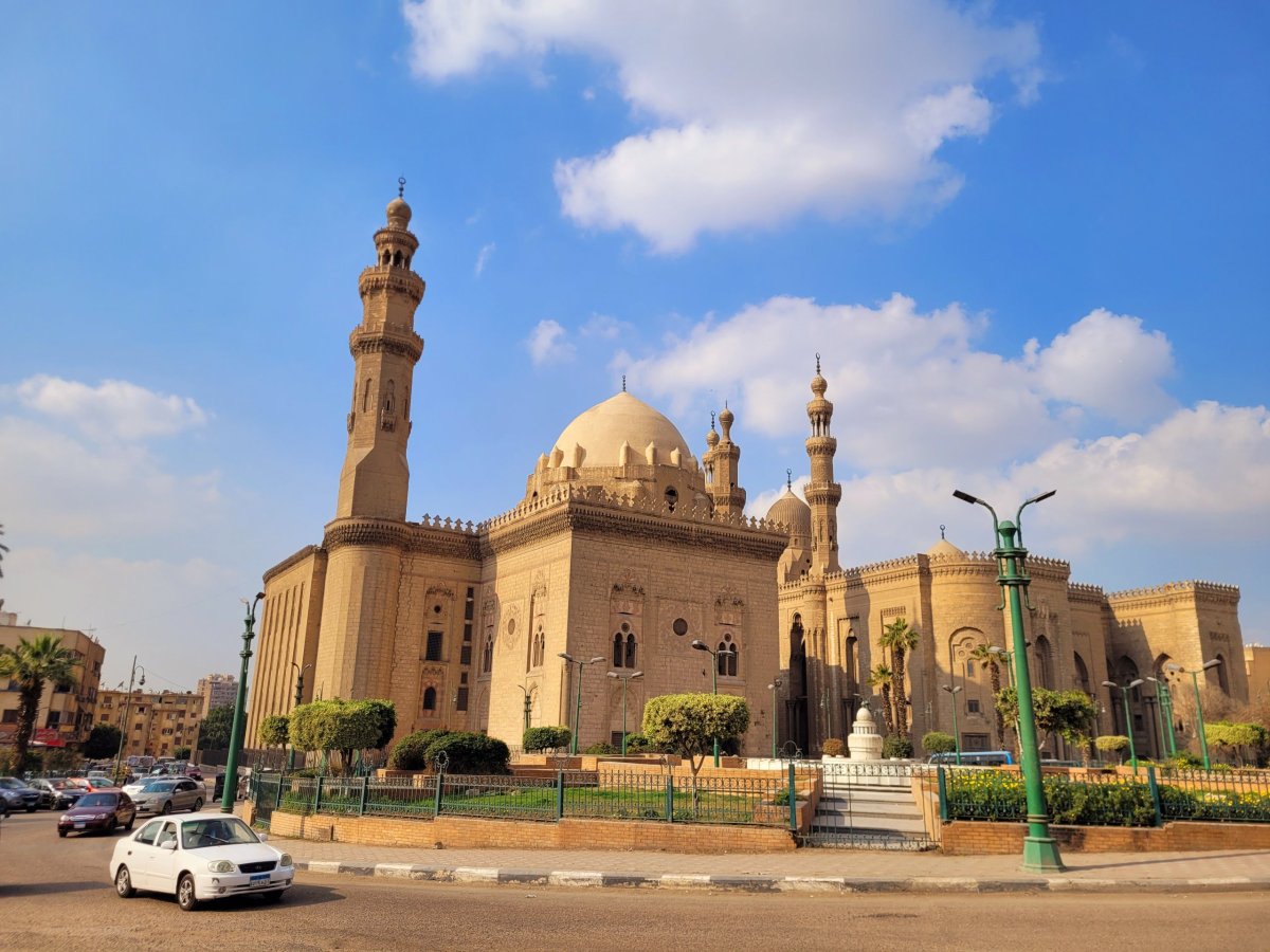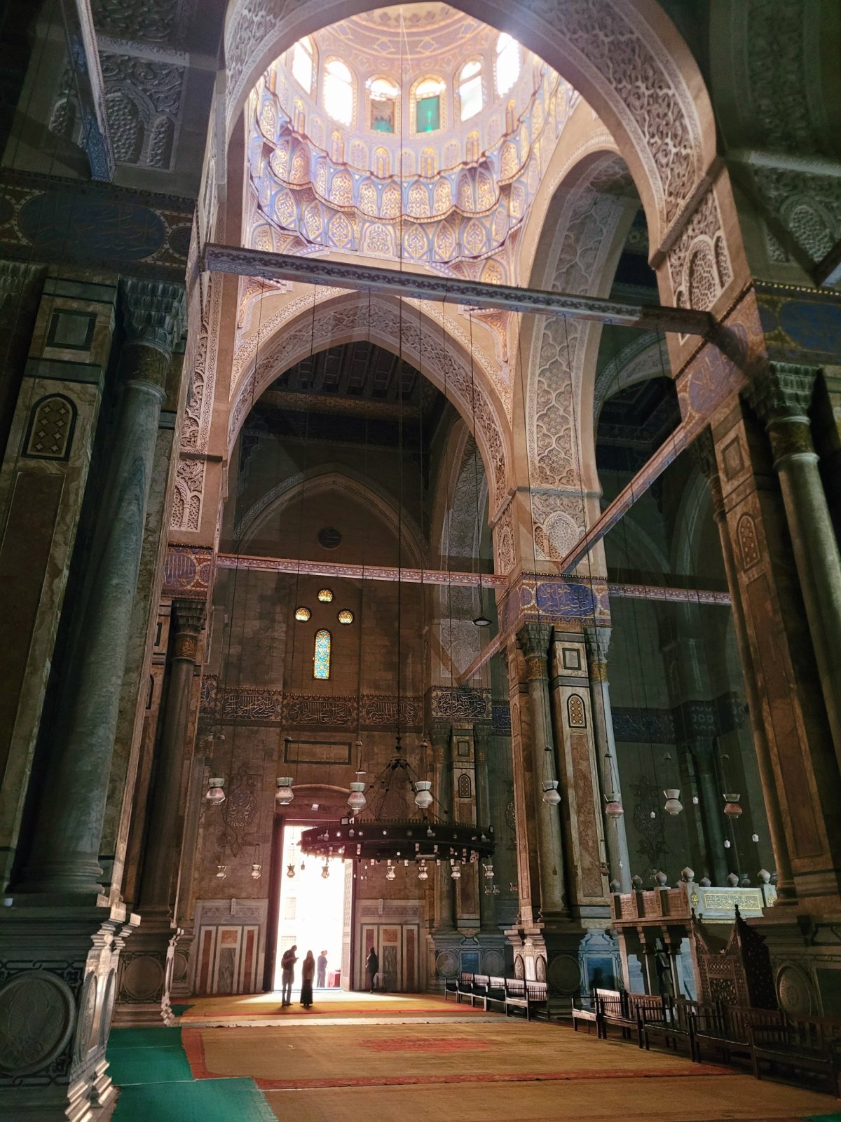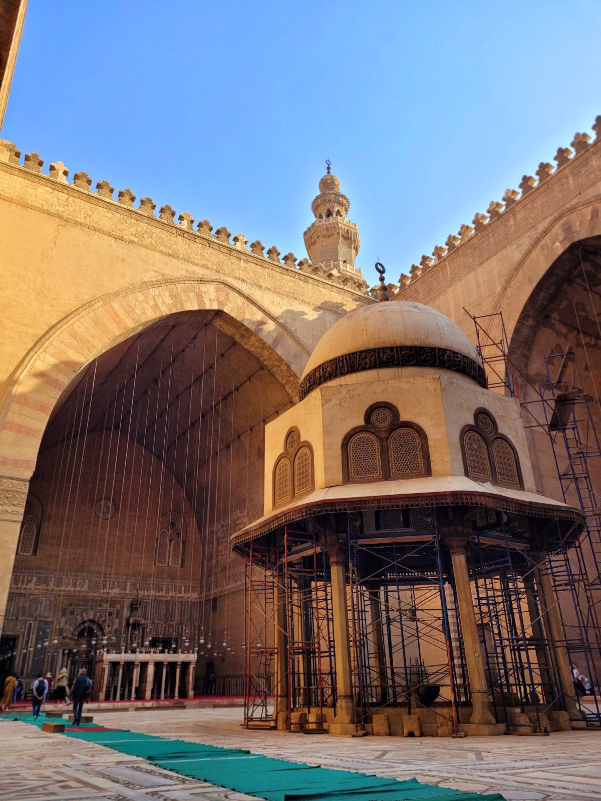 Seběhneme z kopce k mešitám Rafaei a Sultána Hassana. Druhá, starší z nich, je již ze 14. století.