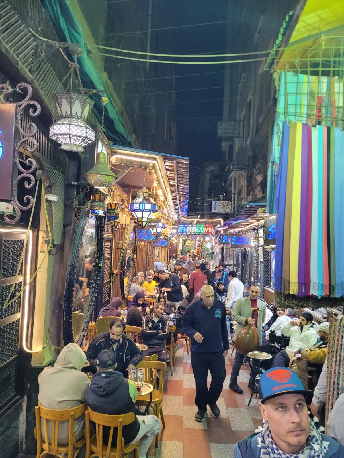 Po západu slunce nás už čekají pouze bazary Khan el-Khalili a Al Khyiamia. Bylo toho opět dost. Později večer se pomalu přesouváme na letiště. S velikým předstihem. Trochu přikakaně. Ona jízda Káhirou a obzvlášť po setmění je opravdu jen pro silné povahy. Jezdí se tu v podstatě bez pravidel. Jede ten, kdo má menší respekt k ostatním účastníkům silničního provozu a bojí se méně srážky. Je fajn, že tu alespoň většina aut svítí. Jezdí se ve více pruzích, než kolik jich tu je nalajnovaných. Pokud teda jsou nalajnované. Musí se počítat i s pěšáky přecházejícícmi i plné, šestiproudé dálnice. A perličkou je občas někdo jedoucí v protisměru. Na letišti jsme bez úhony. Poletí nám to v 04.40..