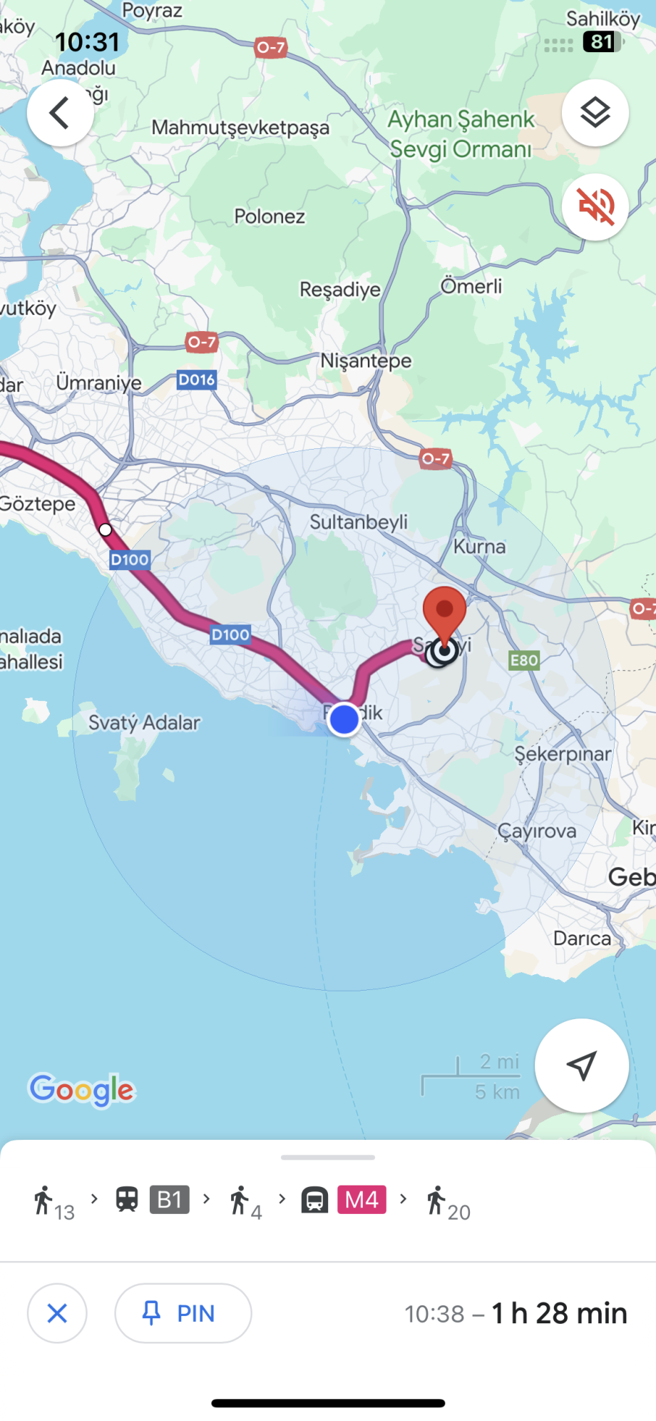 Odjížděli jsme ze zastávky Yenıkapı, linkou B1 směr Pendik, přestup se uskutečnil v zastávce Ayrılık Çeşmesi, ze které každých 5 minut odjíždí linka M4 směr letiště Sabiha Gökçen Airport.