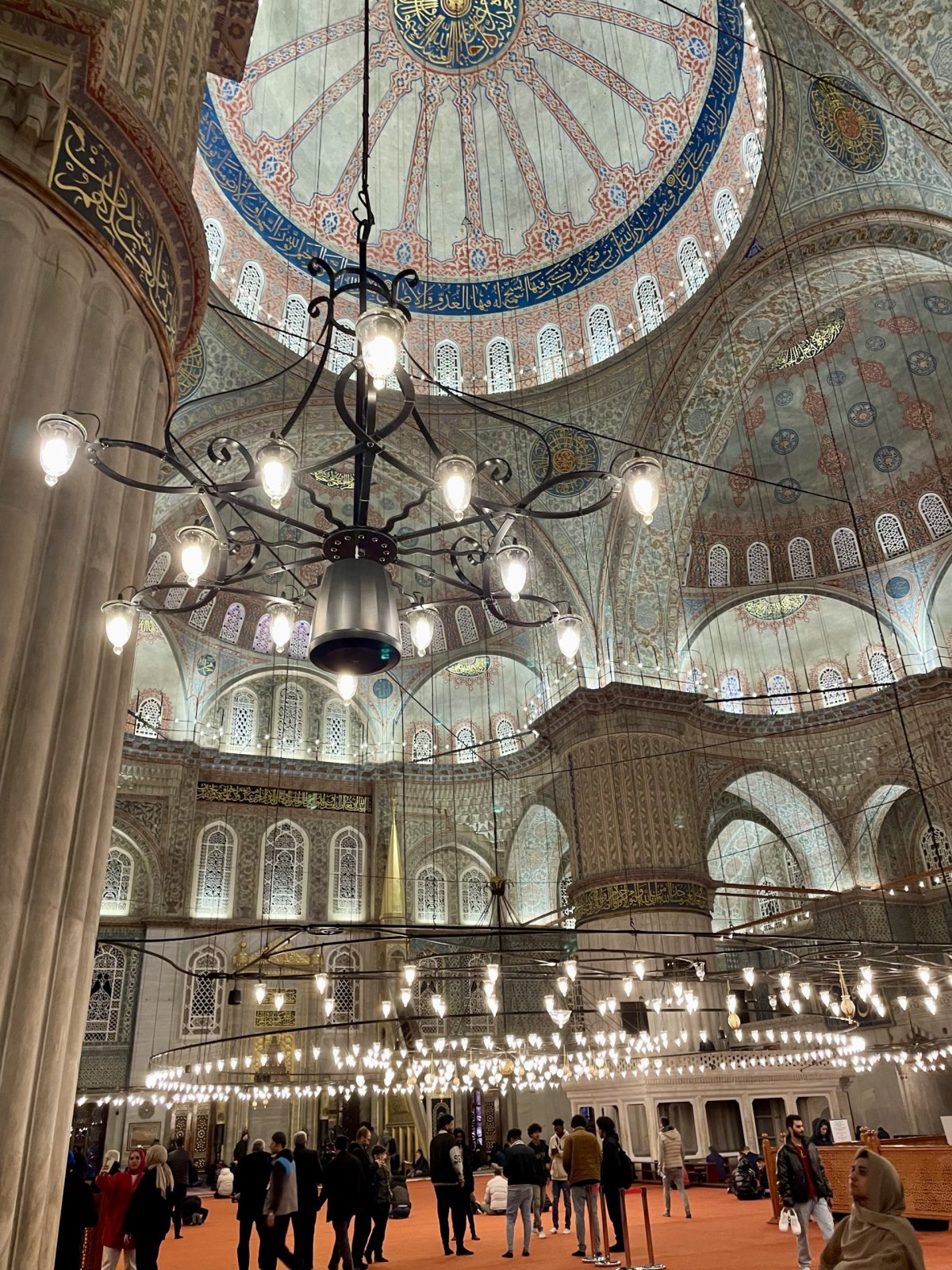 Jelikož jsme dojeli v pátek, nemohli jsme nahlédnout dovnitř, protože pátek je pro Muslimy náboženský den, vlastně všechny dny jsou pro ně nábožensky významné, ale v pátky nejvíce, ještě v období Ramadánu, kdy se sejde celá rodina a v parku před Modrou mešitou si udělají piknik a následně se pokračuje modlitbou, tento zvyk lze nejlépe pozorovat právě v období Ramadánu.