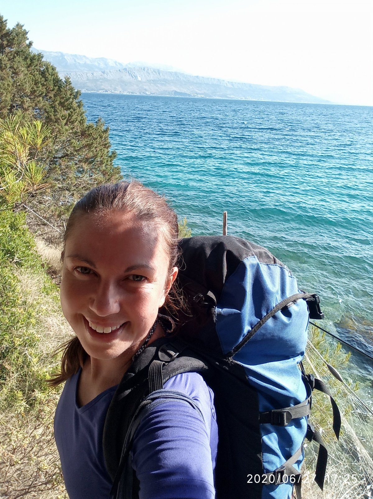 Z vrcholu jdu dál do vnitrozemí směr Supetar. Po 5 km mě vezme německá rodina s dodávkou, vyloženě mě zachránili. Už jsem se modlila, ať mě někdo vezme. Po 10 km mě vyhodili přímo u Lídlu v Supetaru. Doplnila jsem zásoby a šla hledat své ubytování v hostelu nedaleko pláže.