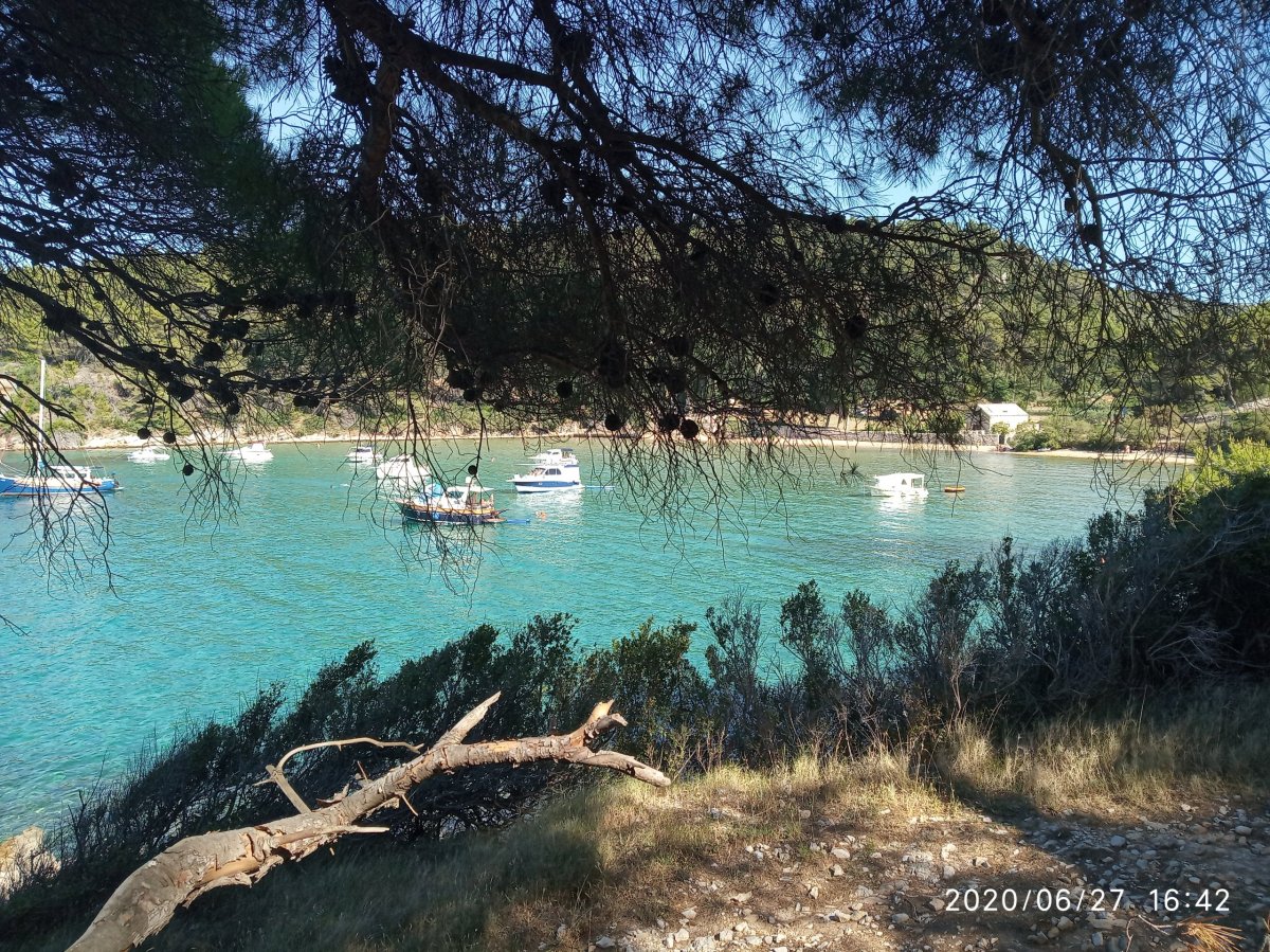 Z Chebu vyjíždím v 6:34 Pendolinem do Prahy. Odlet do Splitu 12:25 a v 16:hod trajektem na Brač. Časově na jedničku. Žádné větší zádrhele. Nakoupím pár věcí k jídlu a jdu ze Supetaru směr Splitská pár kilometrů, abych našla vhodné místo na spaní. Prodírám se borovicovým lesem a právě si německý pár balí věci a odchází z pěkného místečka, který je přesně to které se mi líbí k přespání. Je krásný večer, nebe plné hvězd a já se těším že se vykoupu a zalezu do spacáku:). Pár krát jsem se vzbudila, ale noc fajn. Vstávám až v sedm a to už sluníčko pěkně hřeje. Koupačka, ranní hygiena, snídaně a hurá vpřed prvnímu dni na Brači.