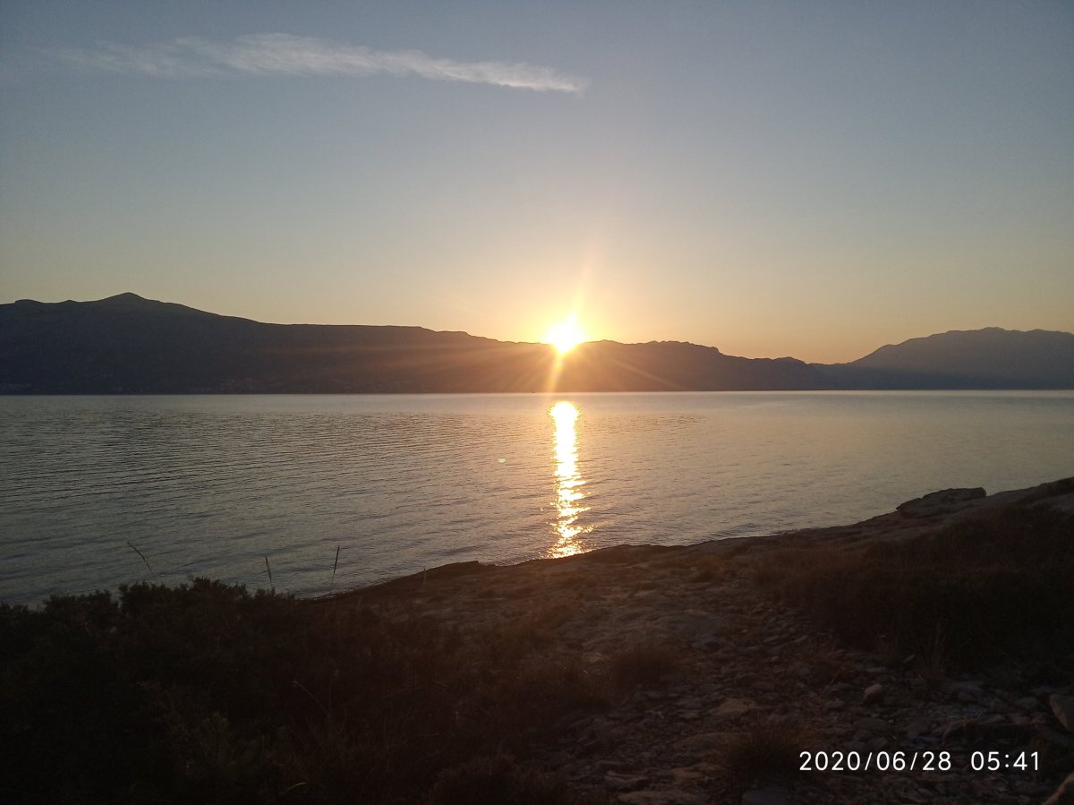 Nedělní ráno a já se vzbouzím už ve 4:40, ale brzy jsem usnula, tak jsem pěkně odpočinutá. Užívám si teplo spacáku a čeká na východ slunce, které by mělo být za hodinu. V 7:40 už jsem na silnici směr městečko Pučišca, zkouším stopovat, ale skoro nic nejezdí. Tak si dám snídani ve stínu a jdu pěšky dál. V 10:40 jsem na místě. Projdu si městečko, dokoupím zásoby jídla a pití a na krásné plážičce si užívám plavání, čtení, psaní deníku a relaxu. Na konci dne se přesunu víc podél zátoky dál od města a najdu místečko na přespání, tady otravují komáři, tak se celá musím zabarikádovat:).