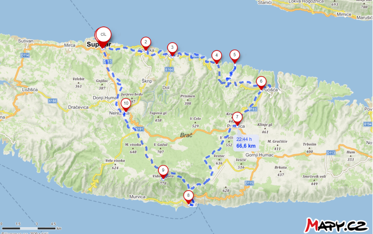 Okruh ostrovem Brač s výstupem na Vidovu Goru (780 m n.m.)