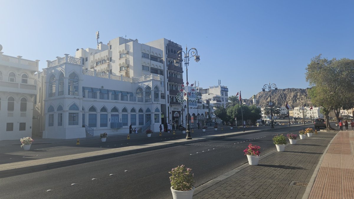 Po snídani ještě nabíráme síly po nočním cestování a až odpoledne vyrážíme poprvé do ulic. Sedáme do auta a naším prvním cílem je Matrah, přístavní městečko s nábřežní promenádou a jeden z doporučovaných turistických cílů v Ománu. Cestou se seznamujeme s celkem rušným místním dálničním provozem a do města vjíždíme typickou zděnou bránou. V Matrahu nás zaráží, že všechny parkovací místa v centru jsou uzavřené a hlavně, podél hlavní cesty stojí co 50 metrů voják se samopalem. My na okraji města najdeme parkování a během pár minut je kruháč, kterým jsme tam přijeli, ze všech stran uzavřen policií. Hm, divné, ale my pokračujeme do města na promenádu.
