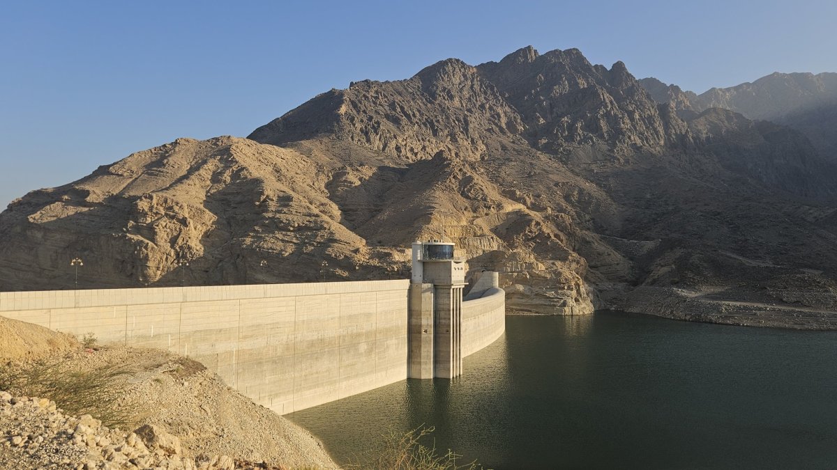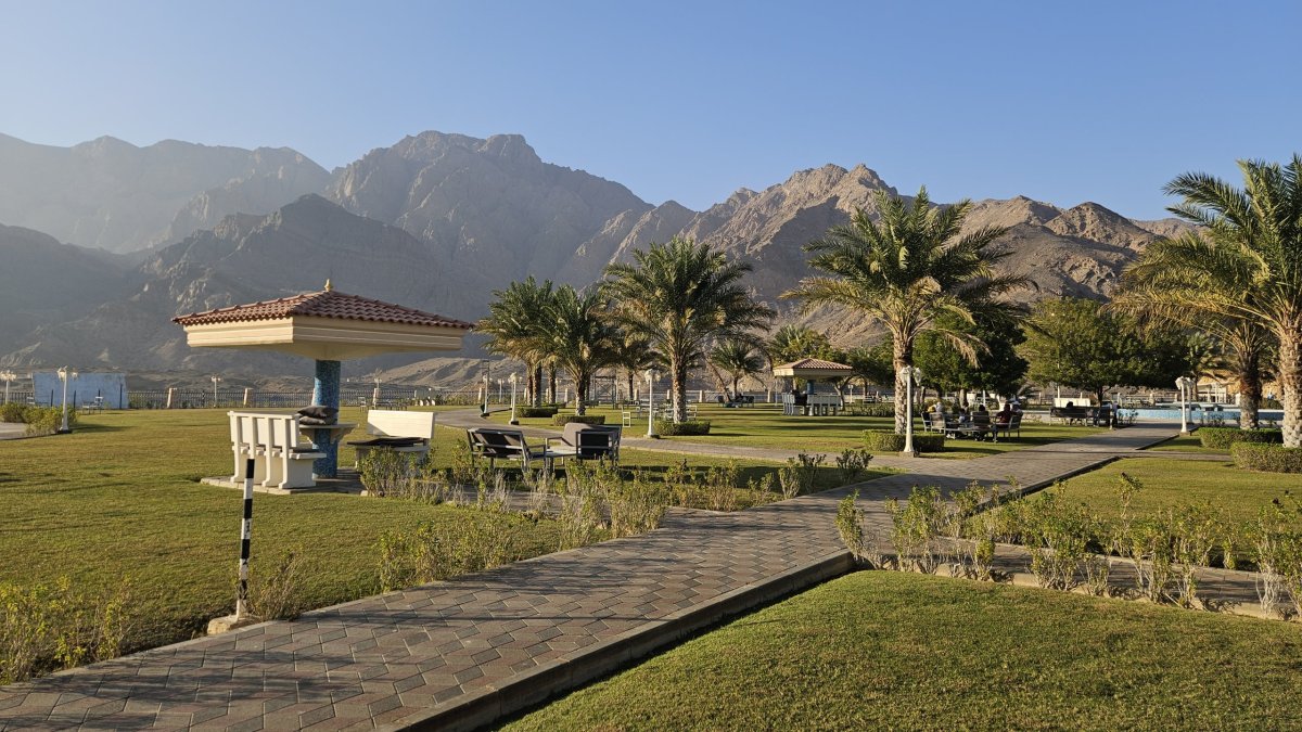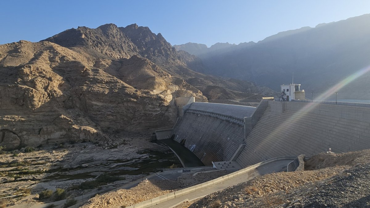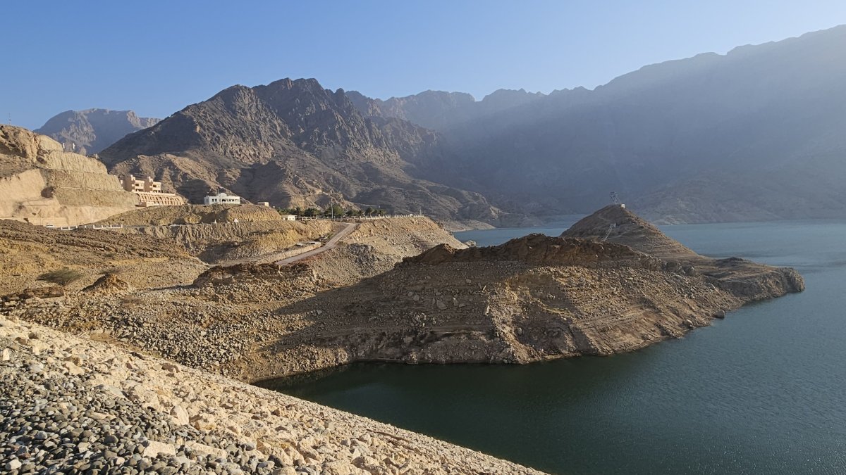 Naším dalším cílem je přehrada Wadi Dayqah, což je obrovská vodní plocha ukrytá v horách, nad níž se drsné hory tyčí až do výšky 1.600 metrů. Vstupné k přehradě se dvěma hrázemi je 1 omar (54 Kč). Je sobota (pro místní tedy naše neděle, neboť víkend mají v pátek a v sobotu) a zelený park u přehrady je celkem plný místních, kteří si užívají díky dostatku vody rozsáhlého trávníku. Je zde i možnost spousty placených lehce sportovních aktivit. My si zde v místním stánku s občerstvením dáváme opět doslova za pár omarů lehkou večeři a zůstáváme na tomto neskutečně klidném a příjemném místě až do chvíle, kdy slunce zmizí za hradbou hor. A poté večerním rychlopřesunem po dálnici, po celé délce osvětlené, míříme na hotel.
