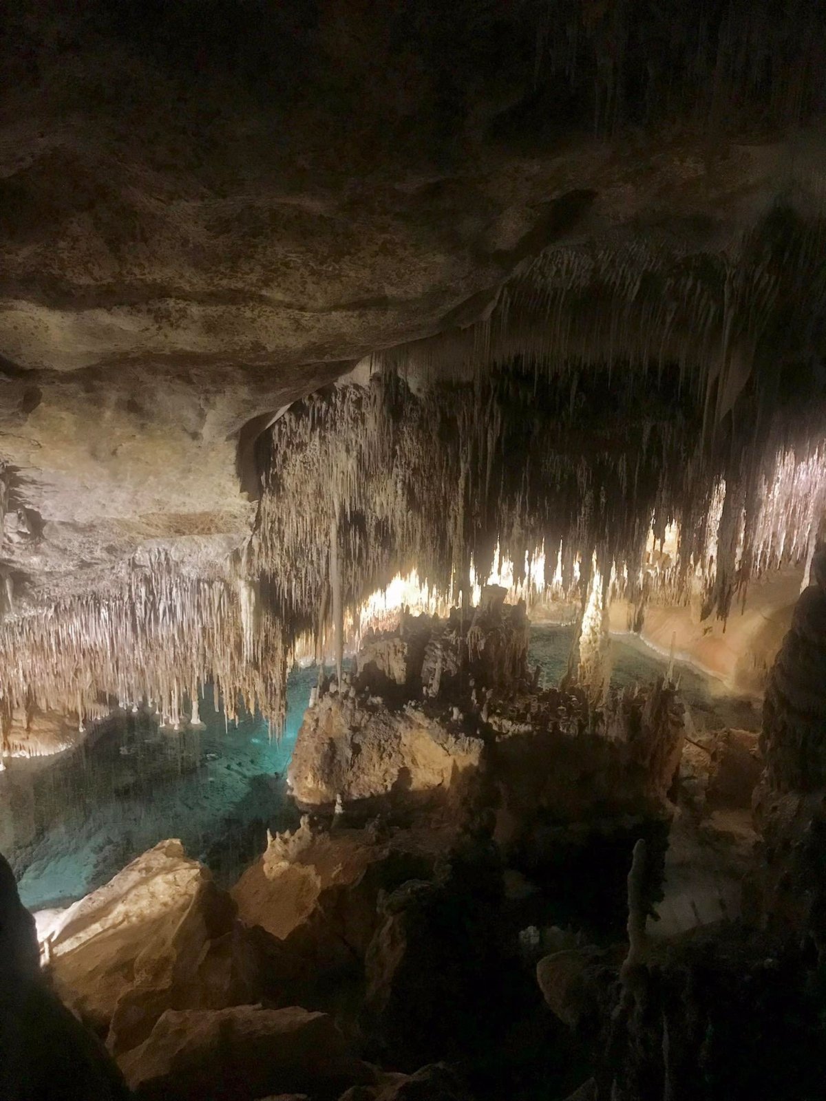 Potom co jsme si užili noc v hotelu, vyrážíme na další worth-seeing místo Cuevas del Drach, neboli Dračí jeskyně. Nachází se na východním pobřeží ve městě Porto Cristo. Cesta je komplikovanější, neboť se člověk musí hromadnou dopravou nejprve dostat do středozemí do města Inca. Z ní následně vlakem do města Manacor, a až odtamtud autobusem přímo k jeskyním. Uznávám, že velká část naší dovolené padla na přesouvání se všude možně, nicméně půjčit auto na tak krátkou dobu by se nám nevyplatilo, a být na jednom místě jsme také nechtěli. Ve vlaku nejsou žádní průvodčí, tak jak je to u nás, ale funkují tam brány, které vás bez lístku nepustí. Ten se dá zakoupit přímo v hlavní budově nádraží. Lístek na prohlídku jeskyní jsme si objednali dopředu na určitý čas, neboť jen tak máte jistotu, že se opravdu dostanete dovnitř. Je to hodně frekventované místo. Vyšel nás každého na 400.-. Jeskyně je dlouhá asi 2,5km a hluboká cca 25m. A nachází se tam dokonce jedno z největších vodních ploch na světě. Při čtení recenzí narazíte na rozporuplné názory. Souhlasím s tím, že je to opravdu frekventované místo a ženete se s dalšími desítkami turistů skrze krápníkové jeskyně, nicméně mě se to i tak líbilo a udělalo to na mě dobrý dojem i přes to, že radši vyhledávám underatted místa. Nakonci prohlídky vás čeká asi 10 minutový koncert, kde hraje živá kapela přímo na lodičkách vážnou hudbu. Má to unikátní atmosféru a je to moc pěkná podívaná. Poté se můžete projet na lodičkách, kde jsou avšak obrovské fronty. My měli to štěstí a vlezli jsme hned do první loďky.