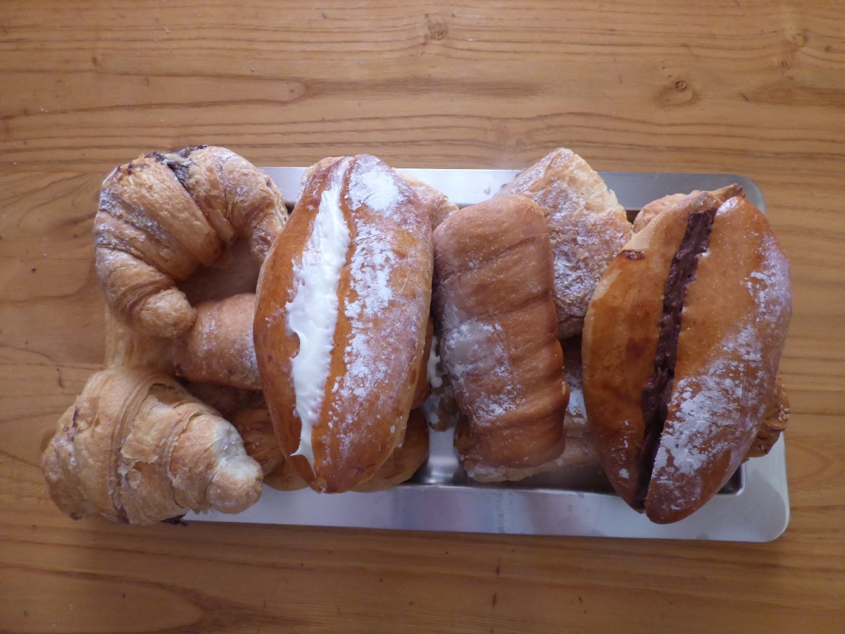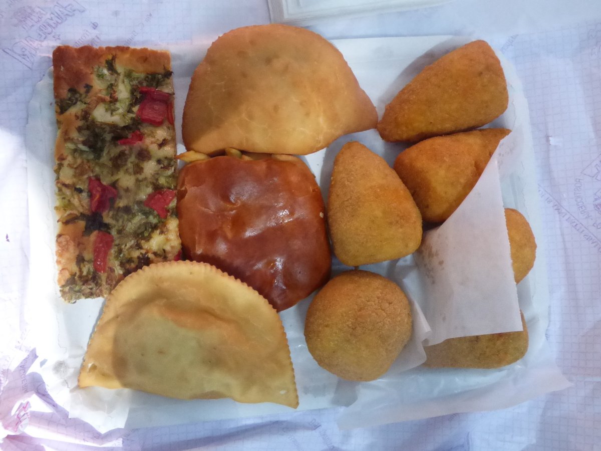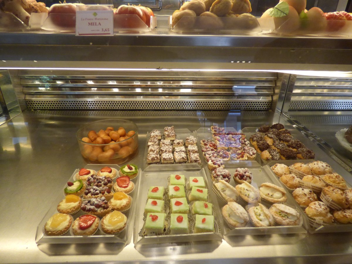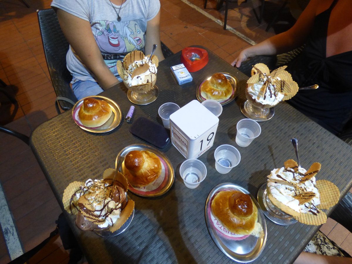 Každé ráno otec rodiny zajel do některé z mnoha pekáren a přivezl plný tác krémového pečiva – na fotce. Tyto obřadně rozkrájel a spolu s moka kávou jsme labužnicky před cestou na pláž ochutnávaly. Každý den jsme zašly do cukrárny a italská kamarádka objednala granitu – někdo by řekl, že je to naše ledová tříšť a proto by nás asi nenapadlo, si to objednat. Ale na Sicílii i v Kalábrii je to lahůdka – nejedná se o umělé příchutě, ale je to z ovoce, báječně vyšlehané. K tomu je kopec pravé šlehačky a čerstvě upečená brioška. Vzpomínám si také, že kamarádky z Itálie byly předtím u nás v Brně a někde jsme šly kolem ledových tříští – zaradovaly se, že vidí něco, co znají. No, jejich výraz ve tváří po ochutnání české granity – snažily se, co nejvíc to šlo, zamaskovat zklamání. Takže opravdu doporučuji ochutnat mlsounům pravou italskou granitu – se šlehačkou a teplou brioškou, prosím. V cukrárnách jsou ve vitrínách zmrzlinové výrobky mnoha různých příchutí (na fotkách), stejně jako zmrzlinové dorty, či jejich kousky – doporučuji rozhodně ochutnat. Další specifickou sicilskou dobrotou jsou cannoli – dělají se s mnoha různými náplněmi. Arancini – na Sicílii a v Kalábrii je spousta pekáren – je to vynikající, levné, mnoho druhů. Nejlepší jsou samozřejmě ty, které jsou např. u škol. Tak jak všude – vyplatí se pozorovat, kde je chumel místních. A v pracovních dnech se na mnoha místech (u pobřeží), ale ne na místech, určených obvykle pro turisty, nabízí polední menu – za pár euro s více chody (těstoviny, tousty, olivy, bruschetty), včetně nápoje, které je potřeba sdílet (pro 4 osoby jsme objednávali tuším jen 3 „meníčka“).