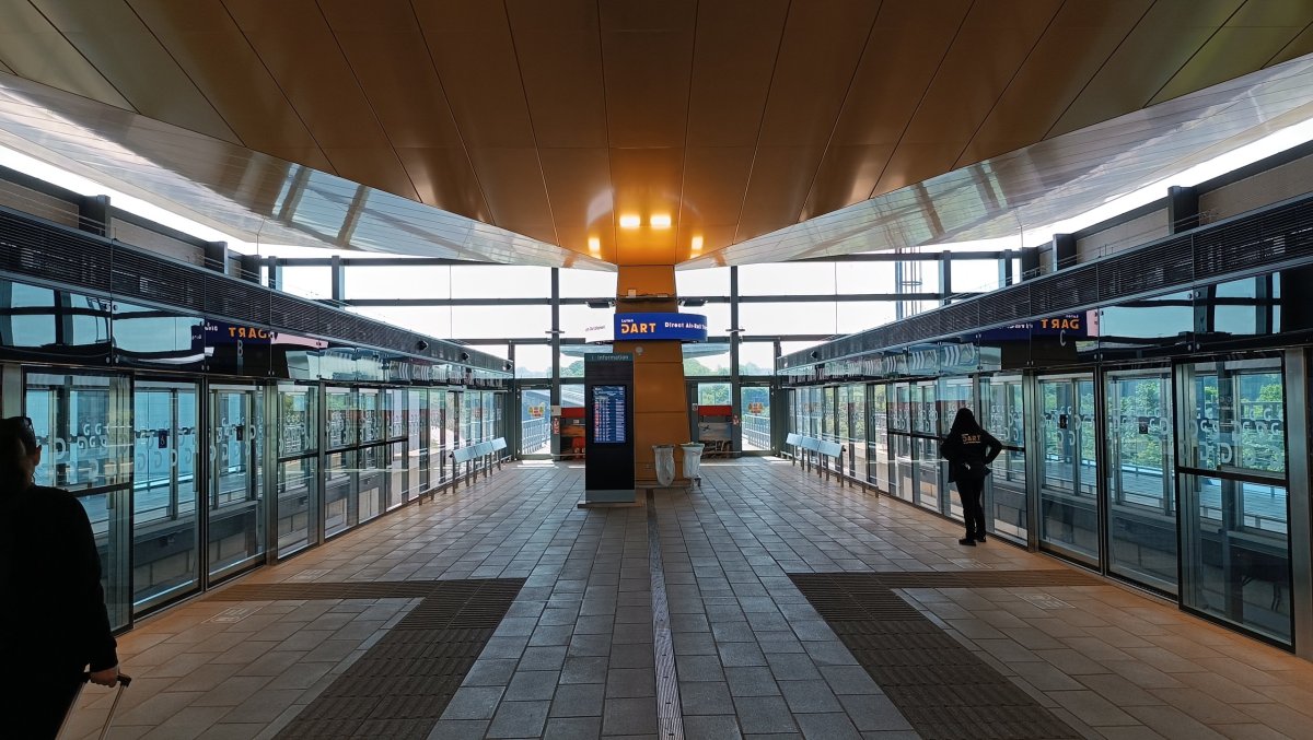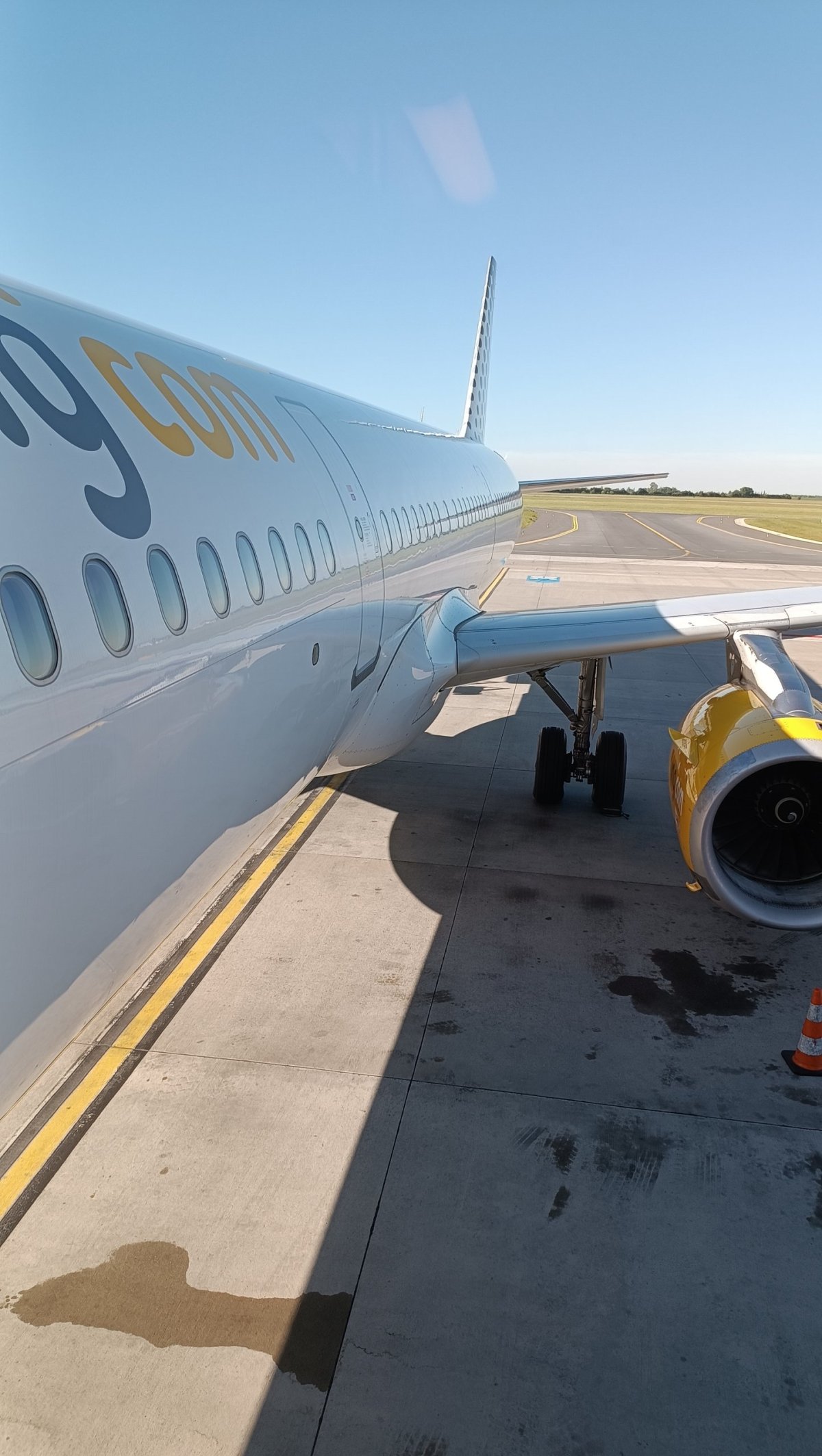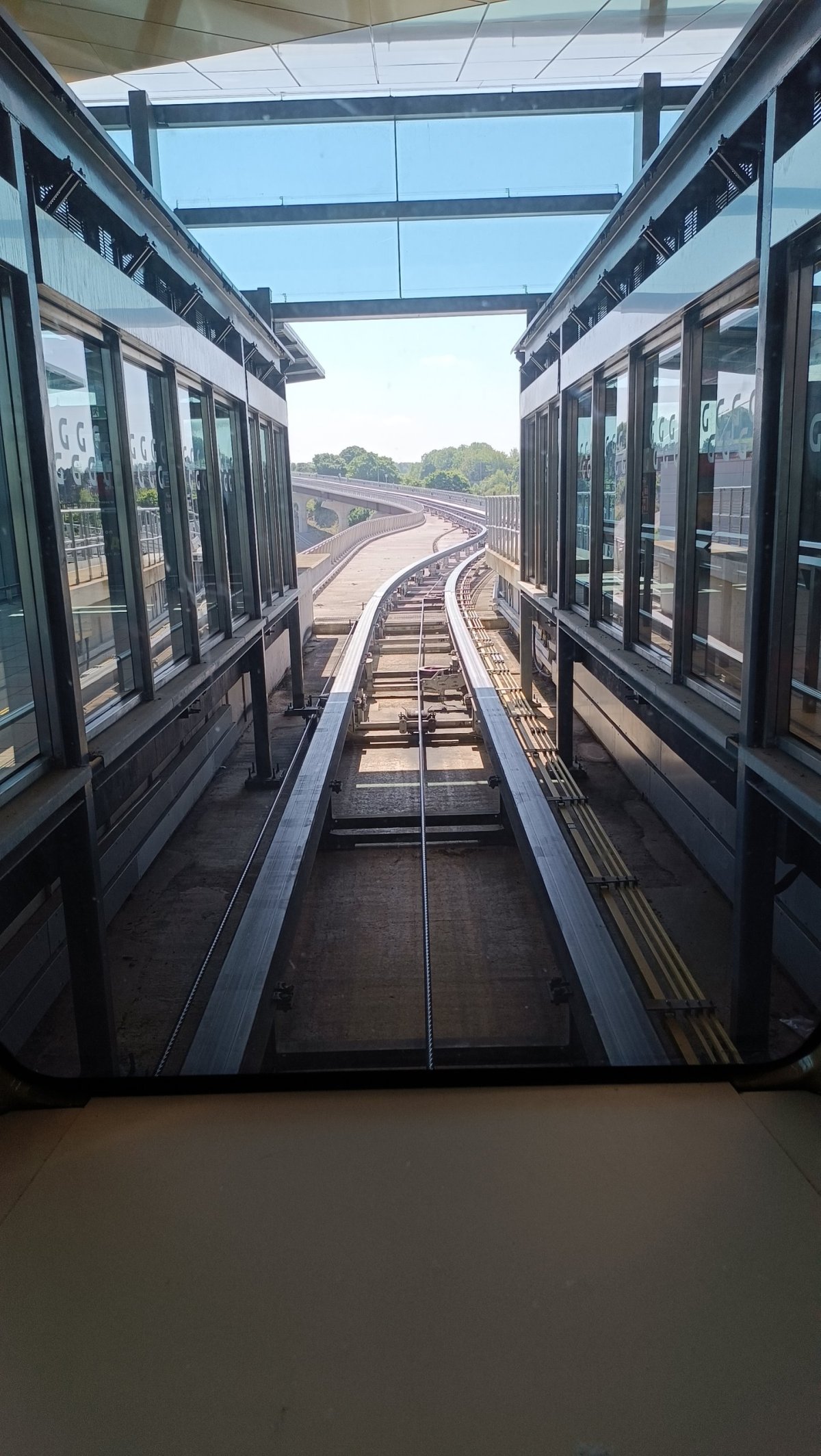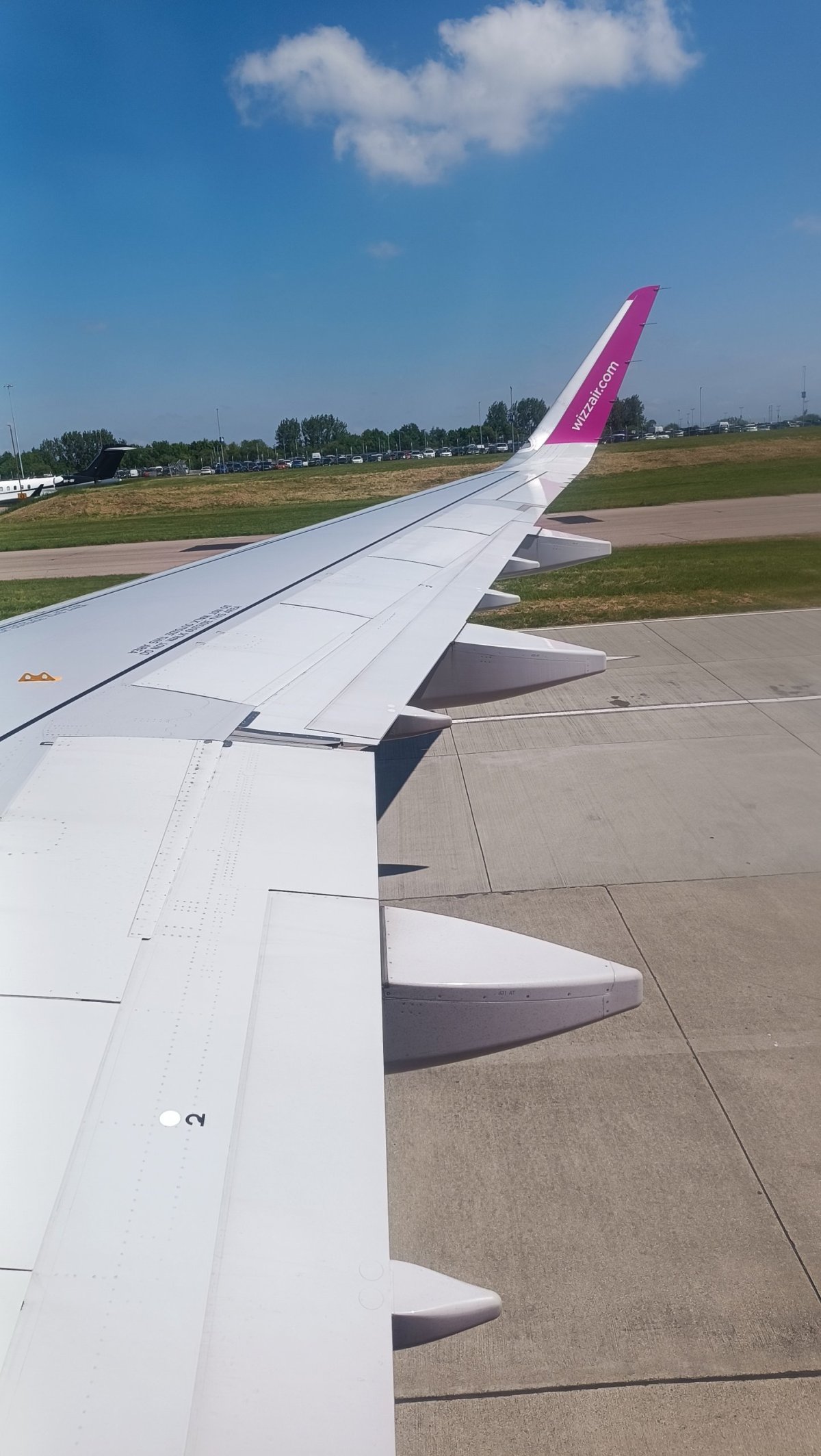Vlak jede skoro celou cestu rychlostí kolem 150 km/h. Jsme na místě za cca 20 min. 10:37 jsme na stanici Luton Parkaway. Tady nasedáme na "lanovku" DART směr letiště, která jezdí přibližně každé 4 minuty a jízdné je v ceně jízdenky na vlak. Na letišti u přepážky odbavíme Ív zavazadlo. Potom vypijeme zbylý džus a sníme svačinu. Procházíme bezpečnostní kontrolou, která byla tentokrát fakt dost dlouhá. Ke gate přicházíme, když už začíná nástup do letadla.