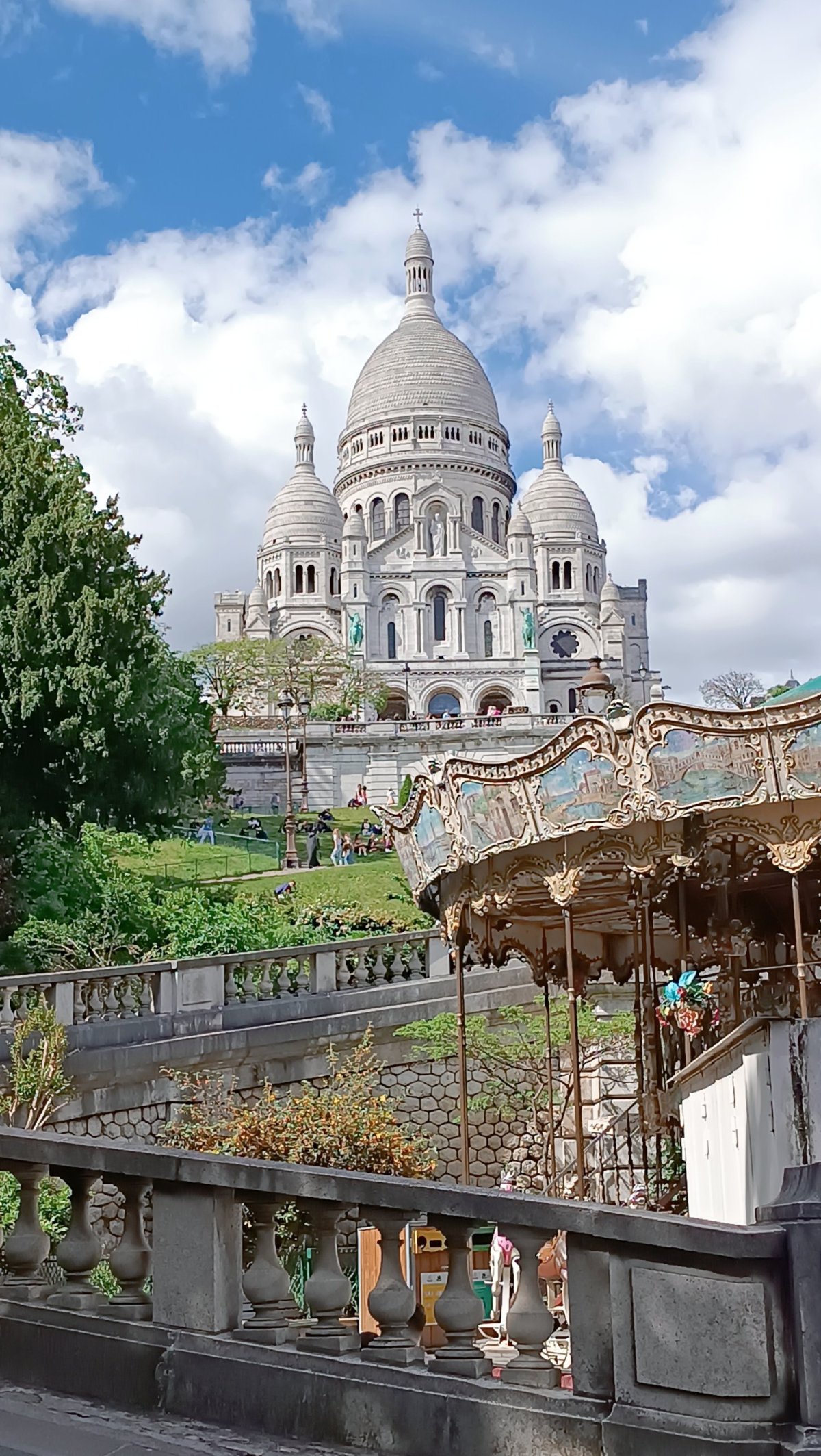 Na hotelu, kousek od stanice metra Convention, jsme přibližně ve 13:30. Ubytováváme v krásném romantickém pokoji v 5. patře s výhledem na ulici. Po krátkém odpočinku vyrážíme vstříc novým dobrodružstvím. Sedáme na metro a jedeme směr Montmartre, vystupujeme na stanici Abbesses a jdeme pěšky skrz parčík až přímo k Bazilice Sacré-Coeur. Cestou míjíme pár Heloumyfriendů. Uděláme pár fotek na Instagram a skrz davy turistů se rveme dovnitř. Nádherný interiér katedrály nás uchvacuje, bližší informace o katedrále si nacházíme na Wikipedii. Cestou z katedrály jdeme okolo její zvonice, kterou oba vidíme poprvé. Jdeme přes náměstí umělců dolů směrem k Moulin Rouge a cestou míjíme ještě malý větrný mlýn přistavený k restauraci. Zastavujeme se v supermarketu pro naše první francouzské jídlo a to bagetu a kozí sýr. Dáváme si romantický oběd na lavičce u Moulin Rouge a po obědě se vydáváme na krátkou procházku po ulici plnou obchodů s erotickým zbožím a kabaretů.