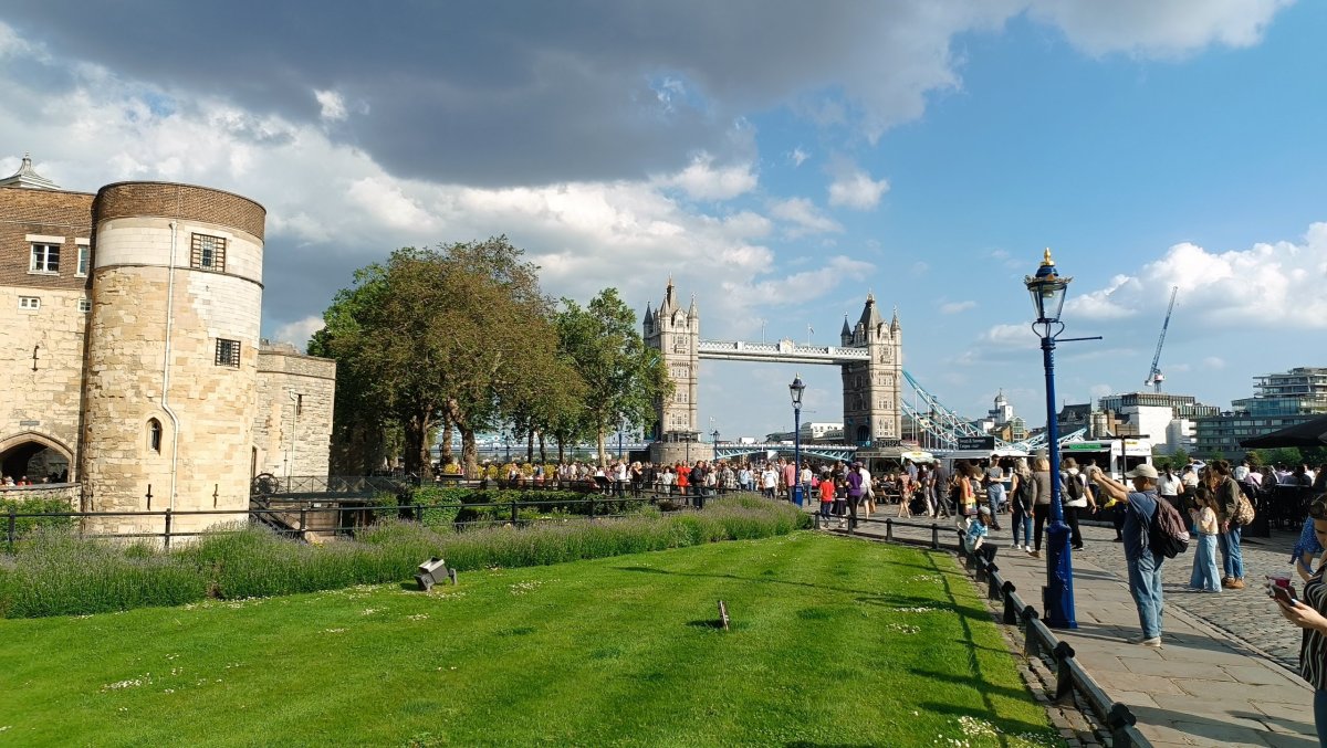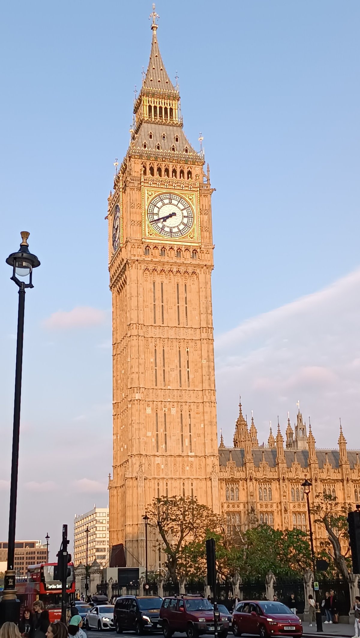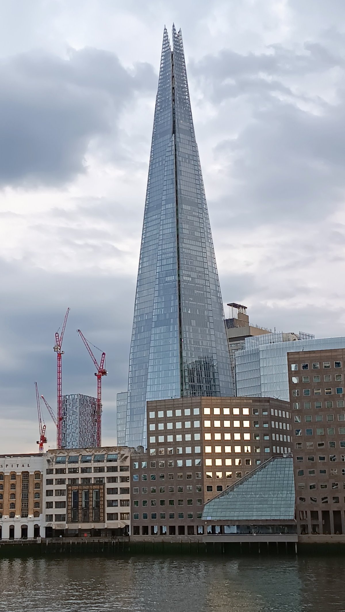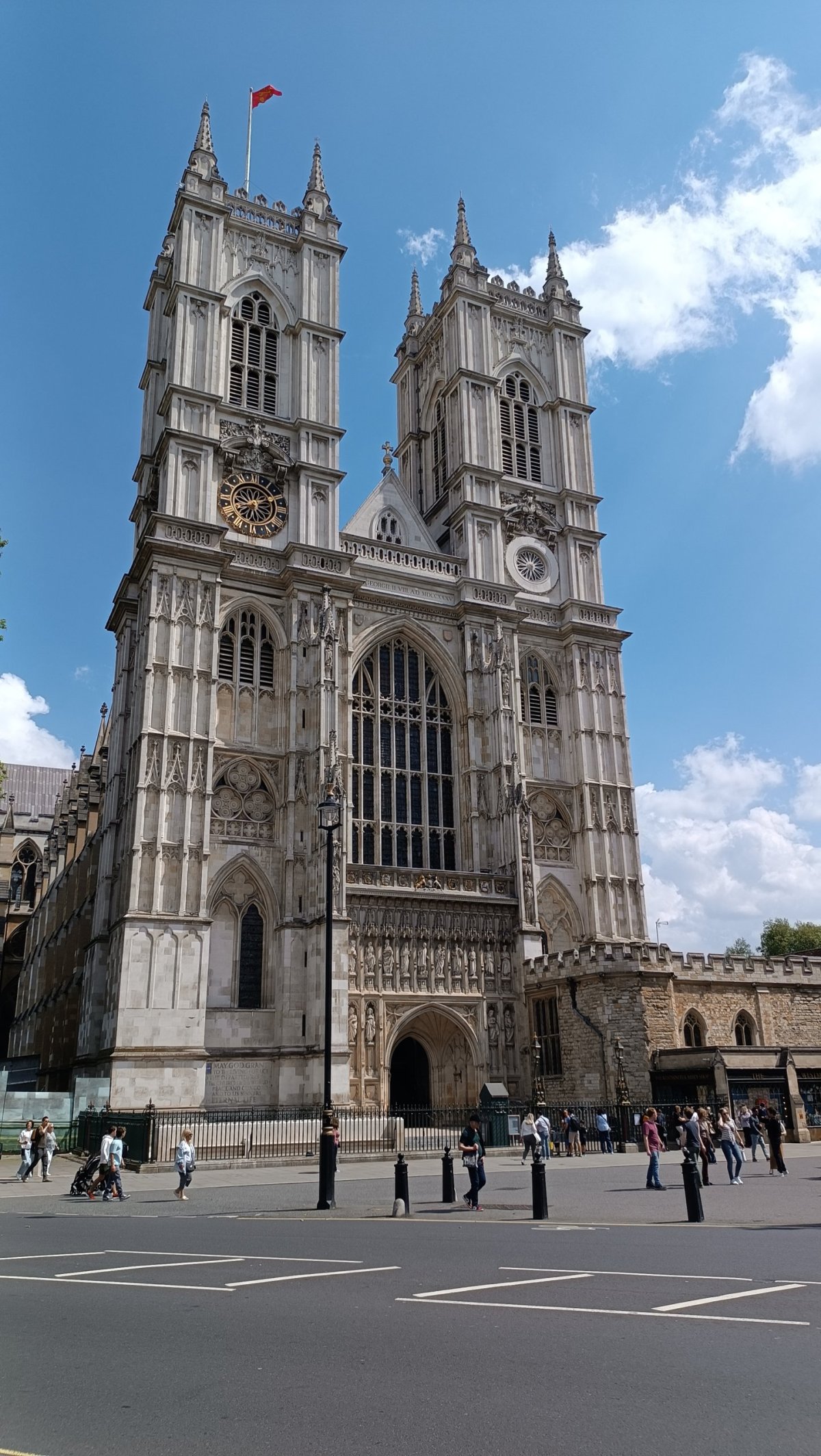 Po chvilce odpočinku na lavičce se vydáváme dál k Westminster Abbey. Čteme si o historii na Wiki a vydáváme se na druhou stranu řeky okolo BigBen. Na druhé straně mostu se otáčíme a fotíme si Westminsterský palác. Potom jdeme k London Eye, kde potkáváme stánek s Fish and chips, které jsme den před tím marně hledali. Protože máme na 15:45 domluvenou prohlídku na Sky garden (Ív o tom neví), trochu spěcháme.