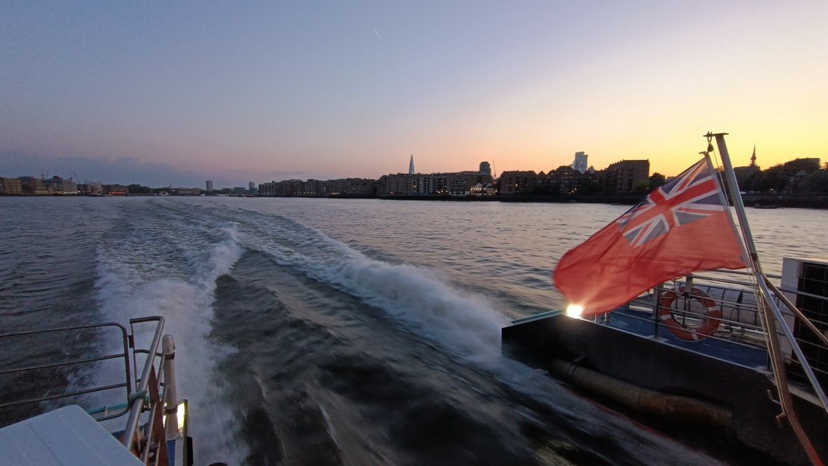 Pak pokračujeme pěšky k Tower a procházíme se po nábřeží (objevujeme další Fish and chips). Na chvíli usedáme na lavičku a kocháme se výhledem. V 18:30 oznamují uzavření nábřeží a tak se jdeme se projít dál po nábřeží a sejdeme k řece, kde je spousta mušlí. Potom se rozhodneme, že na hotel pojedeme lodí. Abychom toho viděli co nejvíc, tak nejvzdálenější zastávka je London Eye. Hned na začátku cesty zkoušíme další Fish and chips, tentokrát u polské obsluhy malého stánku na London Bridge. Procházíme Borrow Market a dál klikatými uličkami po levém nábřeží Temže. Cesta nám trvá cca 30 min. Jen tak tak stíháme poslední loď Uber, která nás po řece zaveze až do Canary Wharf. Kousek od mola je naše oblíbené Tesco express a tak si nakupujeme poslední zásoby. Na hotel dorazíme ve 21:30. Jdeme spát cca ve 23:00.