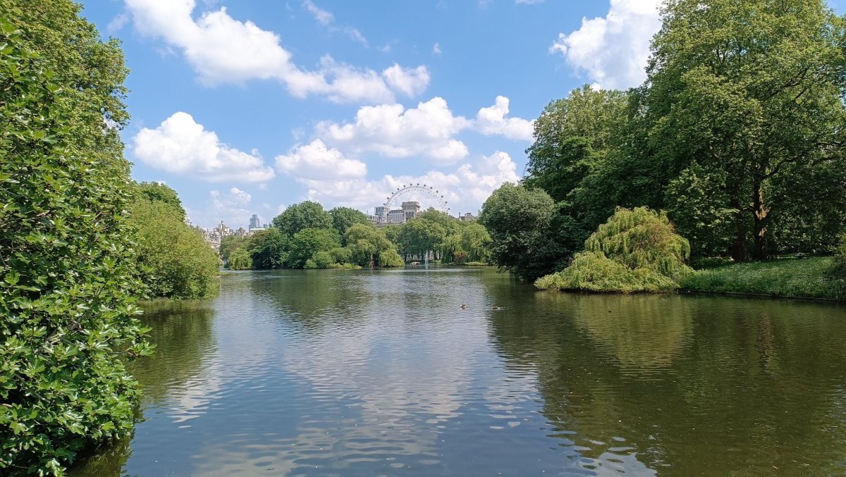 Vstáváme kolem 8:00. Dáváme si snídani a poté kolem 10:30 vyrážíme do centra a vystupujeme na stanici Marble Arch. Ív byl dovolen Primark, kde jsme koupili Marimu dvě hezká trička a Ív pantofle. Poté se vydáváme pěšky přes Hyde Park, zastavujeme se na Speakers Corner. Procházíme po východní straně parku až k Queen Elizabeth Gate, kde si sedáme a dáváme svačinu ve stínu pod stromy. Pokračujeme dál skrz Wellingtonův oblouk, alejí platanů k bráně u Buckingham Palace. Uděláme pár selfie, ale král má zrovna pravděpodobně jiné povinnosti a na čaj o páté nás nezve. Nicméně jsme se už potkali den před tím (v Maddame Tussauds). Pokračujeme skrz St. James park kolem kachen, volavek a jiného ptactva přes Blue Bridge. Tady si dáváme zmrzlinu, smetanovou s čoko tyčkou :-P.