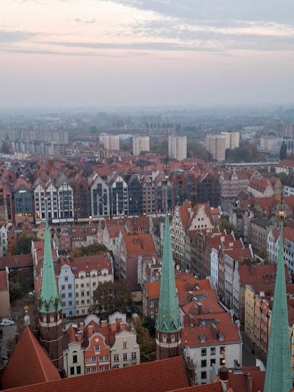 Druhý den nás vítá zamračené počasí, a tak vybíráme kam zajdeme na snídani, nakonec zvolíme cukrárnu Słodko Słono Gdańsk (https://www.instagram.com/slodko...nsk/?hl=cs), kde mají kouzelné zákusky, croasanty a vynikající snídaně. Razíme busem číslo 106 k památníku Westerplatze. Procházíme promenádu kolem pláže, nebudu vám lhát - na koupání to opravdu nebylo. Obcházíme staré bunkry, památník obětem 2. sv. války. Po návratu zpět, jdeme ke kostelu a na vyhlídku. Vyšlapeme si 400 schodů a kocháme se výhledem na město z výšky. V kostelech tu jsou moderní, pokud chcete přispět na opravu, stačí vám k tomu platební karta. Skočíme do místní restaurace, kde je sice pomalá obsluha, ale dle Jany vynikající rybí polévka. Jedna věc, co nás zaráží – ve spoustě restaurací mají čaj za 29-32 PL, tedy cca 180 Kč, nepřišly jsme na to, co je na něm tak zvláštního.