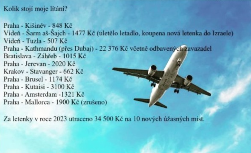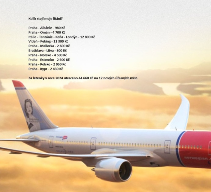 Rozpočet – letenku sežene od 700 Kč do 2500 Kč.