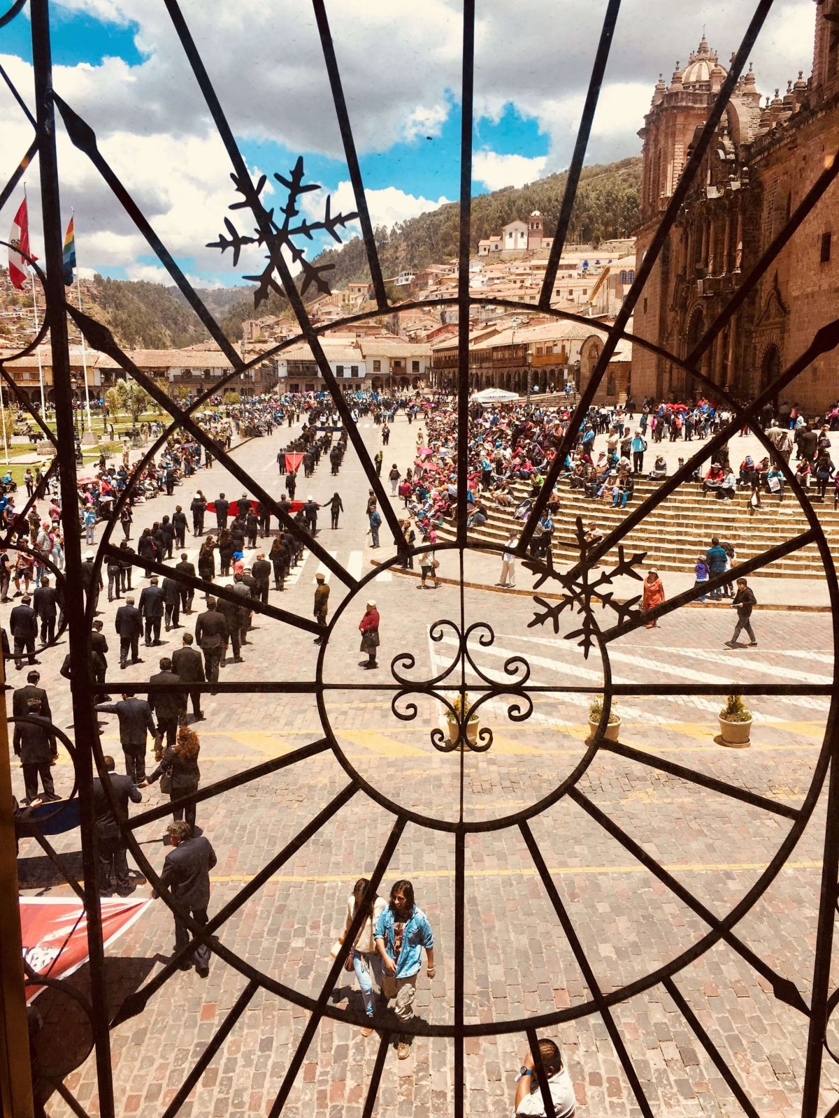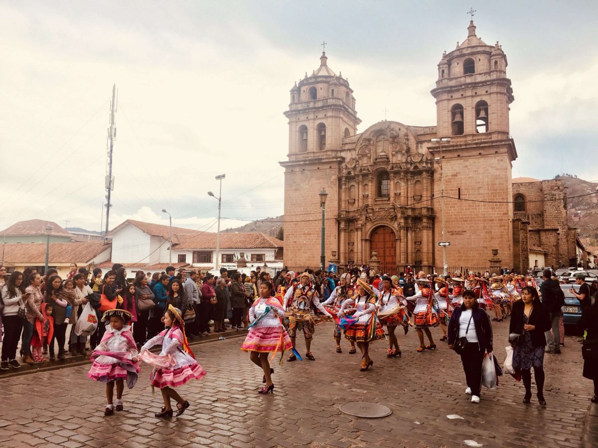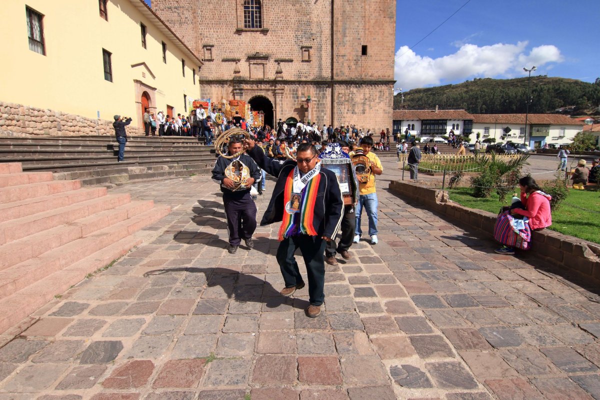 Ráno vstáváme v půl čtvrtý. Ještě, že jsme se zatím nestačili srovnat s časovým posunem. Transfer na letiště máme domluvený v hotelu, tak alespoň nemusíme v tuhle dobu hledat tágo na ulici. Na letiště je to kousek, takže máme spousty času na to odbavit zavazadla a sehnat něco k snídani. V šest už sedíme v poloprázdném letadle a vzlétáme směr Cuzco. Cestou se kocháme výhledem na špičky šestitisícovek klubajících se mezi mraky, hezky nám to utíká a kolem sedmé už kroužíme nad Cuzcem. První věc, co nás v terminálu zaujme jsou lístky kroky zdarma na uvítanou (a překonání horské nemoci, přeci jen jsme teď během hodiny překonali 3500 výškových metru) vyzvedneme bagáž, bereme taxíka a jedem na ubytko. Už z auta si říkáme, ze tady se nám bude líbit. Svití sluníčko, asi 25 stupňů a kolem krásné historické budovy a ulice. Hotýlek Casa Tisoc na náměstí San Francesco je téměř v centru města, ale nedošlo nám, ze když nás tu taxikář v osm ráno vysadí, je na check ni ještě brzy, tak si tu jen necháme krosny a jedem se projít. Hned první úlovek jsou nějaké slavnost v klášteře hned naproti hotelu, za zvuku bubnu místní v inckých krojích halekají a tančí a švihají se u toho navzájem bičem. Pointa nám uniká, ale podívaná dobrá. O chvíli později na schodech jiného kostela snídáme Bůček od nějaké indiánské babičky a zapíjíme ho pivkem. Slibný start dne. Při procházce tržnicí potkáváme český pár, co se námi podělí o pár rad ohledně cesty na Machu Picchu a jdeme dál. Na hlavním náměstí plaza mayor je další slavnost, nějaká přehlídka škol či co. Ještě před polednem máme skoro cele historické město prochozené a doplňujeme energii double espressem ve Starbucksu. Nevíme jestli je to tou nadmořskou výškou, jet lagem nebo tím, že jsme toho za poslední noci moc nenaspali, ale jsme slušně zblblý. Tak se vracíme do hotelu, konečně se ubytováváme a dáváme si šlofíka, oujé. Kolem druhé vyrážíme znovu do města a míříme na oběd. V plánu máme vyzkoušet něco typického místního, tak jdeme na pečené morče. Moc masa na něm není a chuťové taky žádnej zázrak, ale zkusit jsme to museli. Cestou zpátky k hotelu potkáváme další průvod, tentokrát je to nějaká přehlídka místních krojů. Je to paráda, ale říkáme si, jestli tady v tom Peru dělají také něco jiného, než jen slaví. Večer se vydáváme na vyhlídku nad město k inckym ruinám, otvírame pivko a kocháme se výhledem. Cuzco nás fakt nadchlo. Zítra ale máme v plánu další perlu – cestu na Machu Picchu, tak večer sedíme na hotelu, zařizujeme co dal a u skleničky místního rumu a doufáme, že ten déšť, který začíná bubnovat na střechu hotelu do zítra přejde.
