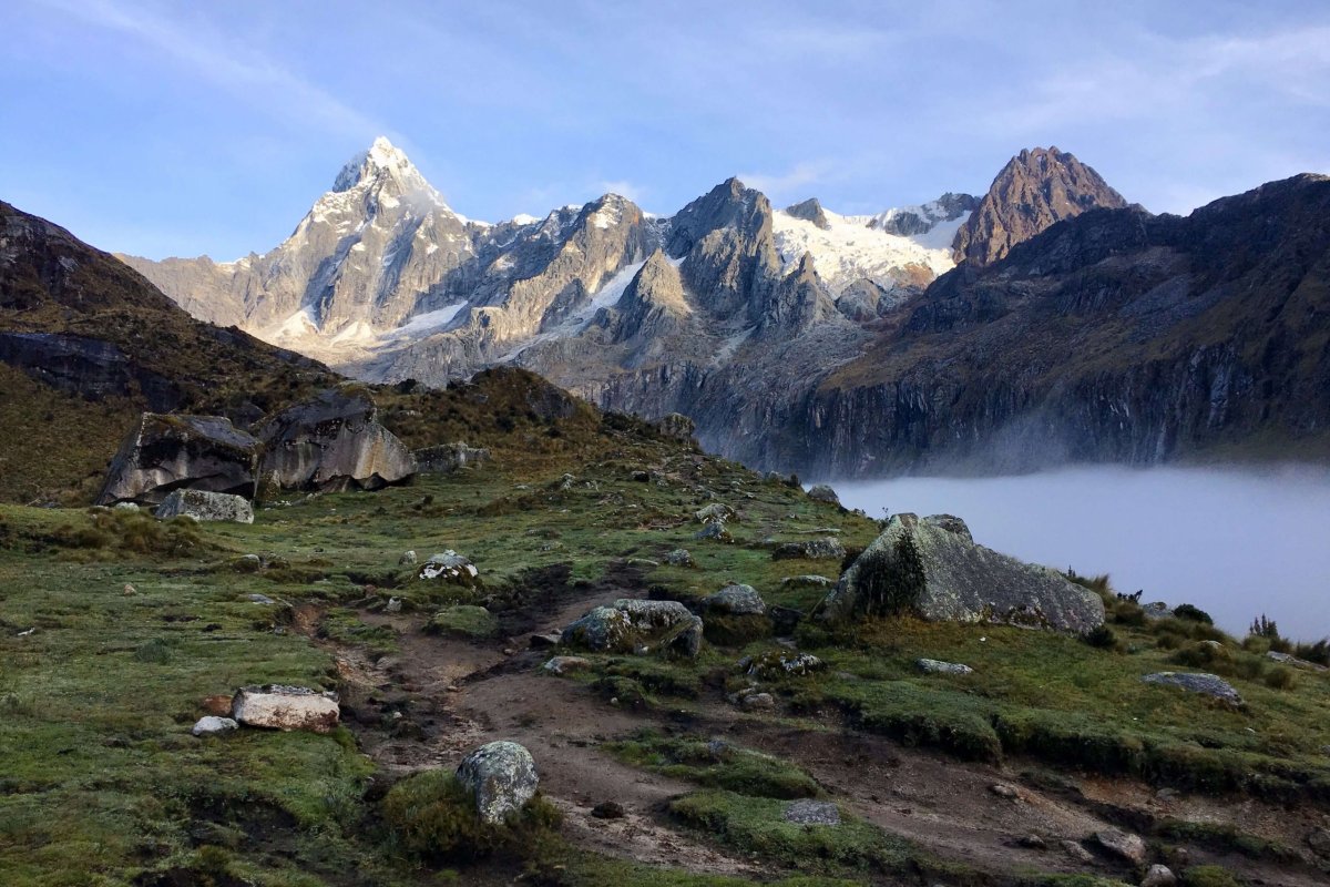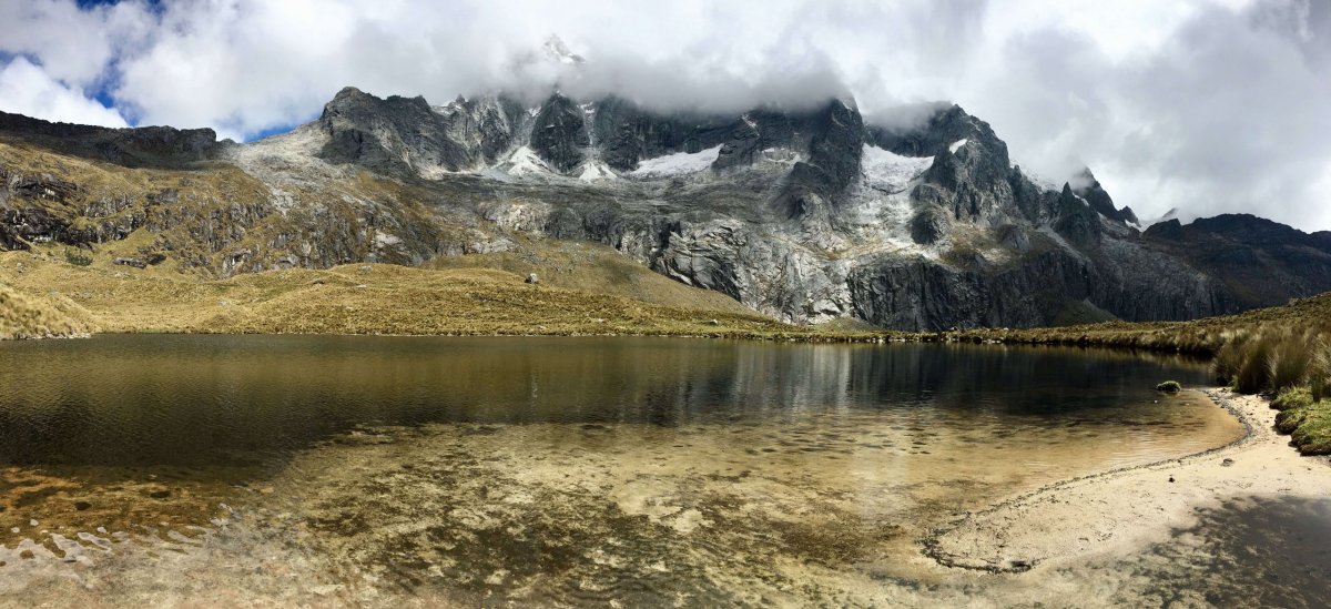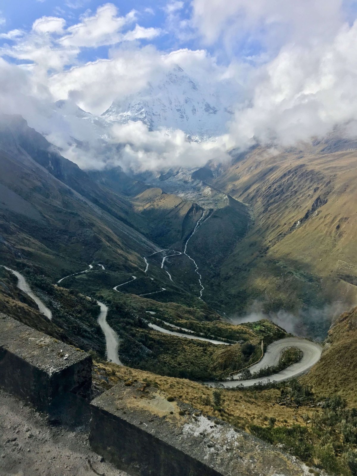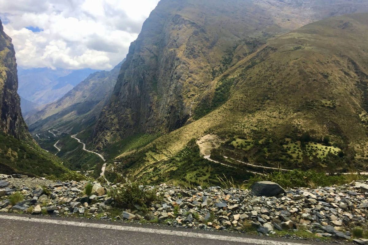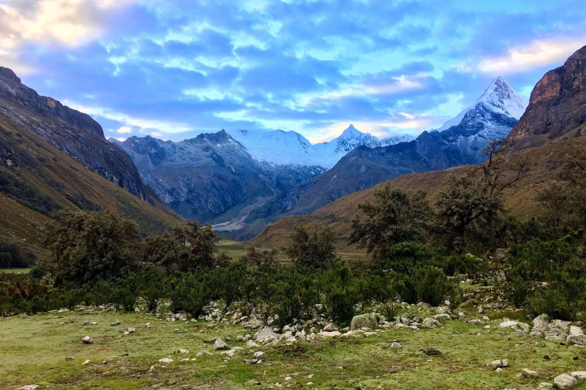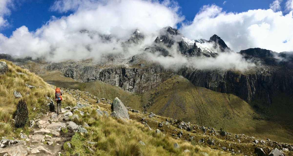Den začíná opět brzkým budíkem. Bez snídaně vyrážíme chytit první colectivo v 5:00 směr Yungay. Colectivo je taková dodávka, kam neberou každého, kdo chce jet tím směrem a cestou staví a nabírá a vyhazuje další bez ohledu na kapacitu. Ale co, za hodinku jízdy platíme celkem 10 solů, tak fajn. V Yungay nás hned odchytne další dodávkář, a když naplní všechna místa, vydá se s námi směr Vaqueria, náš výchozí bod trasy. Z Yungay je to asi další 2 hodiny cesty, ale tentokrát už po nezpevněné cestě linoucí se do hor. Sice je pod mrakem, ale občas se nám otvírají úžasné pohledy na okolní vrcholky hor (včetně Huascaranu). Po chvíli se cesta začne pekelně klikatit a překonáváme sedlo ve výšce 4860 m.n.m! Od něj už to není daleko do Vaquerie. V téhle vesničce nás vysadí, my nandaváme krosny a dál už jdeme po svých. První dva kilometry jsou z kopce, to jen tak na trénink, ale stejnak je znát, že jsme v nějakých 3600 m.n.m. Pak už začne stoupání a každý krok je vykoupen utrpením, děláme pauzy každých pár metrů a do toho střídavě nandaváme a sundaváme pláštěnky dle aktuálního počasí. Průběžně se střídáme s dalšími dobrodruhy, kteří dorazili s námi. S francouzským párem, který jde sice o něco pomaleji, ale vůbec nezastavují a nefotí a s jedním Francouzem – indiánem, který po chvíli vzal čáru a už sme ho neviděli. Po pár kilometrech míjíme boudu se vstupem do národního parku, tak se zapisujeme,ale vstupné po nás nechtějí, prý ho zaplatíme až na konci. Cesta pokračuje údolím s pastvinami, kde míjíme lamy, osly a hlavně krávy. Okolní kopce jsou většinou v mracích a jedinou světlou chvíli je pauza na tortillu. Odpoledne už jsme přesáhly výšku 4000 metrů a po téměř 15 kilometrech v nohách začínáme cítit únavu. Špatně se dýchá a zastavujeme co pár kroků. Do toho se cesta začíná zvedat a nám dochází síly. Naštěstí kolem půl čtvrté docházíme do tábořiště vyznačeného v mapě (je až překvapující, že všechny cesty, hory, tábořiště a zajímavosti jsou vyznačeny v mapách maps.me, takže mapy od Alpenverainu jsme ani neotevřeli). Francouzi už mají postavený stan a my jim kazíme romantiku a stavíme ho o pár metrů vedle. Na to, že ho stavíme poprvé a že zas začíná pršet, nám to celkem jde, akorát jsme ho postavili vchodem z kopce a museli spát hlavami u sebe na užší straně stanu. Když zas přestalo pršet, jdem vařit večeři, nedovařená čínská polívka to spraví (celkově je těžké sehnat tu v obchodech instantní jídla, a jak jsme později zjistili, i instantní polévka se dle návodu má tři minuty vařit, takže zalití horkou vodou z jet boilu to nedá). Jelikož jsme dost unavení, jdeme spát už někdy v šest. Druhý den by to mělo být ještě náročnější…