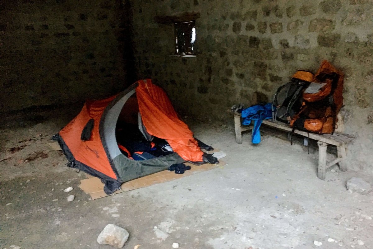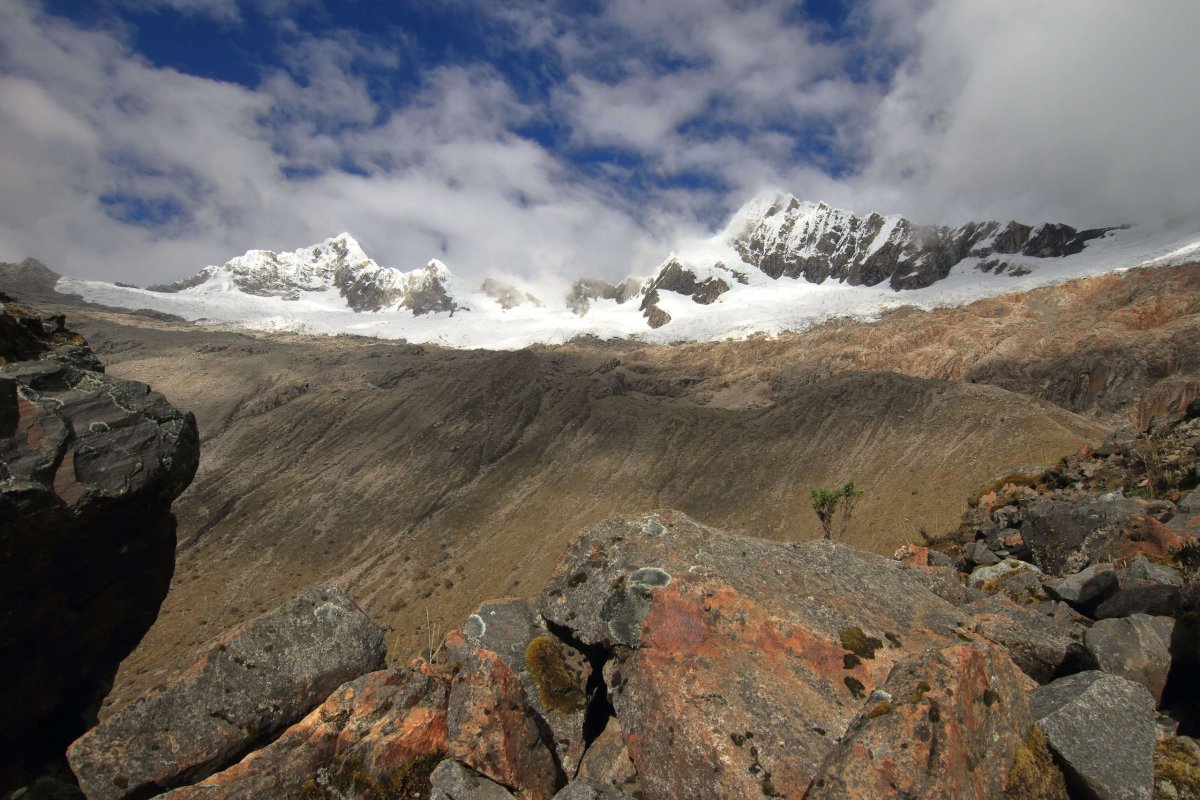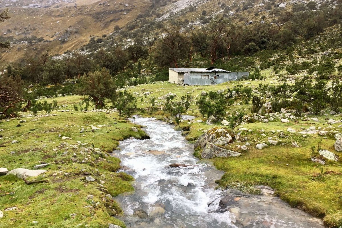 Hecli jsme se teda a vymysleli jsme odbočku z treku, která vede pod známý vrchol Alpamayo do jeho base campu, kde by mělo být i tábořiště a prý krásná laguna. Odbočka je přibližně na 2 hodiny, tak nám to vychází tak nějak podle plánu. Cestu do base campu Alpamaya jsme už šli na autopilota, hotovson, ale 150 výškových metrů jsme nějak překonali a doplazili se do base campu, kde jsme našli opuštěné stavení pro horolezce, tak jsme se zde drze ubytovali. Bylo fajn vědět, že na nás nebude v noci pršet a nebudem muset ráno nic sušit. Pro jistotu, aby nám nebyla zima, jsme si na hliněné podlaze stavení rozdělali stan. Plán pro další den byl takový, že vstaneme před šestou hodinou a vydáme se k laguně pod Alpamayem, která je sice pár metrů od nás, ale je to kopec jako kráva, a po cestě zpátky si vezmeme batohy a půjdeme pryč. Tak snad se nám to ráno povede a uvidíme zase vrcholky okolo bez mraků jako dnešní ráno.