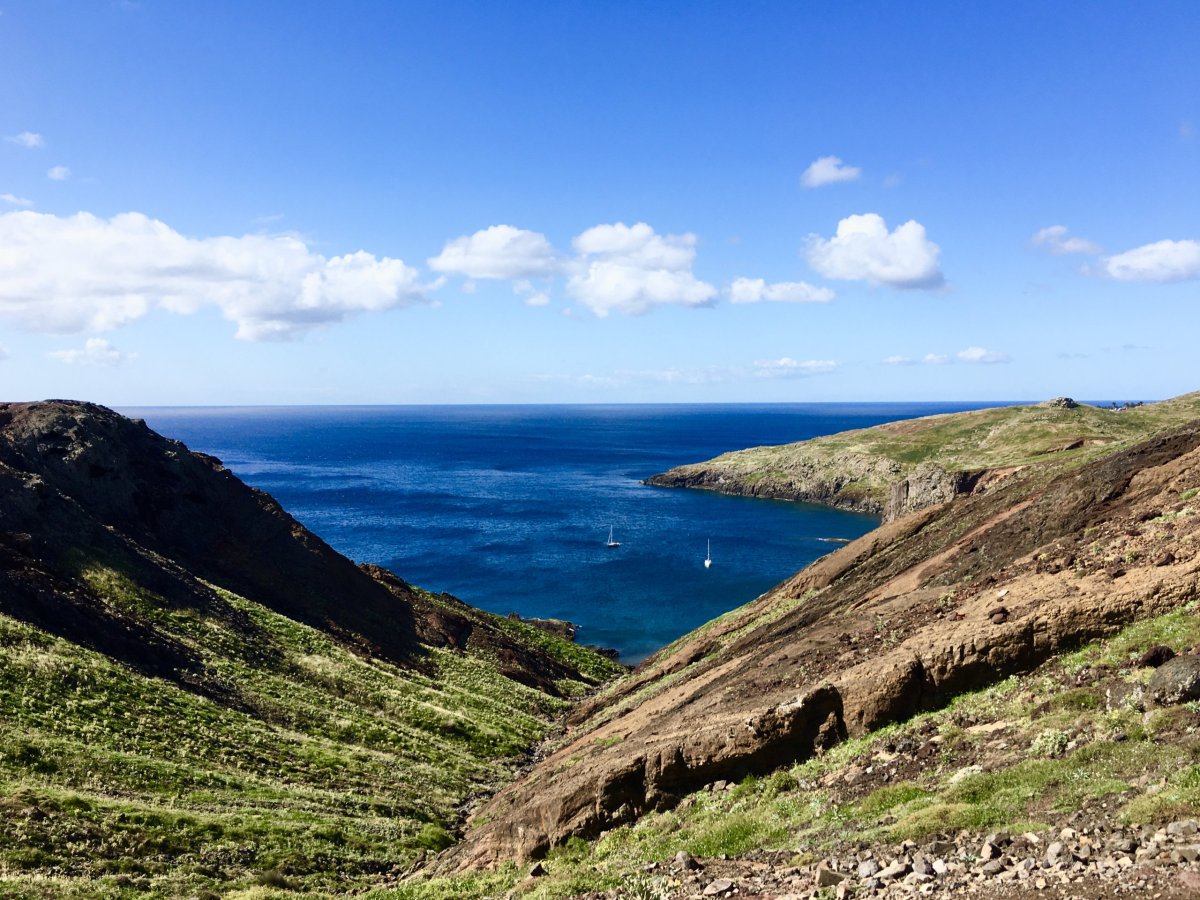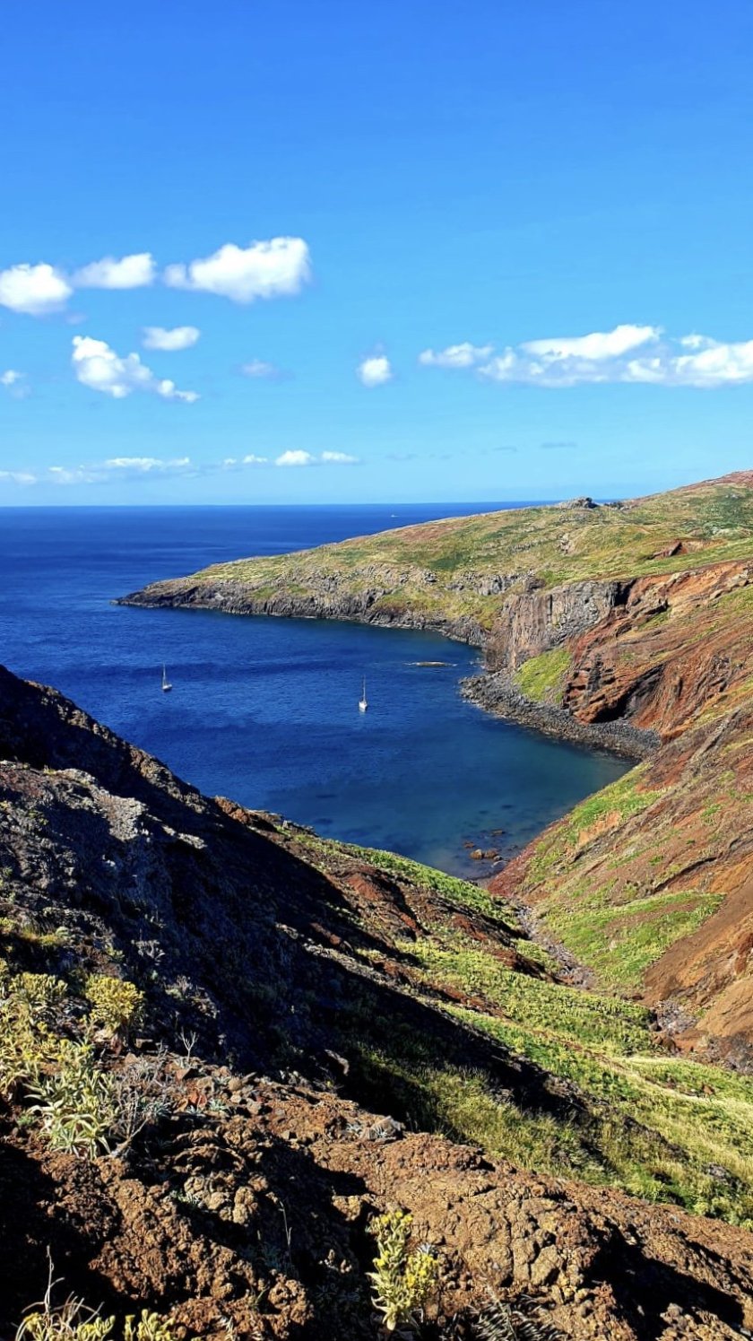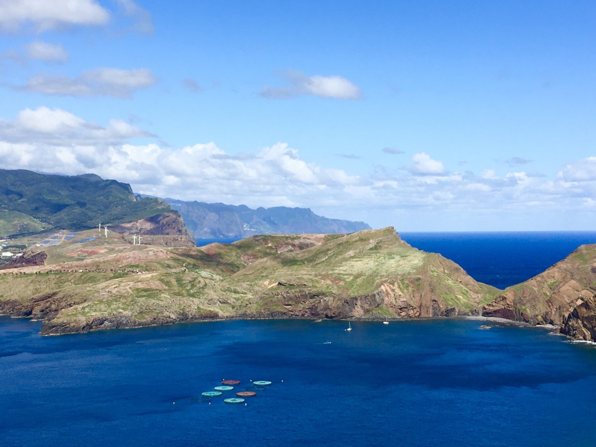 ✌️🌏 Dnešní den jsme se rozhodli pojmout zcela odpočinkově, žádné výšlapy, žádná námaha. První naší zastávkou bylo Garajau. Zastrčené městečko na půl cesty ze Santa Cruz do Funchalu. Hlavním lákadlem je zde socha Krista dmoucí se ve své velikosti nad oceánem. Jen pár desítek metrů od ní je lanovka. Svezla nás ze skály dolů k moři a otevřel se nám fantastický pohled na zátoku. Malá , sluncem zalitá, kamenitá pláž, dokola skály a nikde nikdo. Jen my. Uvelebíme se na lehátkách , popíjíme kávu a vychutnáváme si ten klid. Když se nabažíme, nasedáme do auta a frčíme směr Porto Moníz. První návštěva v nás zanechala skvělý dojem a tak si to chceme zopakovat, s tím, že tentokrát se koupeme v oficiálním koupališti. Minimum návštěvníku, krásných 23 stupňů, relaxujeme a opalujeme se. Tentokrát už lépe vybaveni. To znamená v plavkách. Ještě chceme stihnout vesničku Achada da Cruz, ležíci 10km odtud směrem Ponta do Pargo. Proplétáme se klikatou silnicí v horách a oba svorně konstatujeme, že se nacházíme asi v nejchudší části Madeiry. Dojedeme na místo, Achada de Cruz leží přímo pod námi. Stojíme na 300m vysoké skále a dolů to jde jen lanovkou. Ta bohužel není v provozu a tak jen žasneme nad životem několika vesničanů v tomto zapomenutém místě a filozofujeme o realitě života. Den zakončíme bohatou večeří v Camara de Lobos.