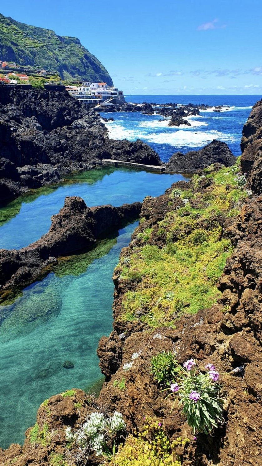 ✌️🌏 Jsme na vážkách. Meteo radary střídavě ukazují, že plánovaný pochod z Pica do Areiro(1816m) na Pico Ruivo(1862m) , uskutečníme již dnes a další o pár minut později , že v horách je mlha a prší. Protože u nás , u letiště je okolo 22 stupňů Celsia, vyrážíme. Jedeme zkratkou, překonáváme neuvěřitelné stoupáky, jednička, dvojka. Pavel si s tím hraje jak se sestavou na derby. Stavíme, fotíme, výhledy jsou úžasné. Najednou prudká změna. Pro znalce hor naprosto známá skutečnost. Ale tady najednou bílo tak, že jsme jeli krokem i když stoupání bylo mírné a pozvolné. Místy se mlha na pár vteřin rozevřela, prosvitlo slunce, aby za pár okamžiků zase vše zahalila. Dojeli jsme na místo, hledáme ukazatele kudy asi na Pico Ruivo? Nejde to, měníme plány a vyrážíme na sever k městu Sao Vicente. Sjedeme pár stovek metrů dolů a co ? Samozřejmě nebe bez mraků, azůro. Zastavujeme, děláme krátké tripy do džungle. Ano tak nám to připadá a tak to zde vypadá. Zpěv ptáků, různé zvuky a šelesty. Míjíme Sao Vicente a pokračujeme dál na západ. Po cestě je několik vodopádů ze skal, pořád nás něco překvapuje. Stavíme v městečku Seixal, je zde malá černá pláž a já začínám litovat, že jsme nevzali plavky. Kdo to mohl tušit, když před hodinou a půl v horách klepeme kosu a nevidíme na krok a teď už si vyhrnuju kalhoty a cachtám se po kolena v Atlantiku. Máme informace, že o pár kilometrů dál na severozápadním cípu , v Porto Moniz je ještě lepší místo na koupání a tak nasedáme do auta a využíváme letních teplot v dubnu s vidinou koupání se v oceánu. Parkujeme a přímo před námi se rozprostírá přírodní mořské koupaliště s několika propojenými bazény, průzračná teplá voda. Tomu nejde odolat! V boxerkách skáčeme do vody a užíváme tenhle nevšední zážitek. Jedinou výhodou této šílené covidové doby je, že tam je liduprázdno. V kavárně nad oceánem popíjíme výborné kapučíno se šlehačkou a máme výhled na druhé, tentokráte již uměle vytvořené , koupaliště s betonovými moly a placeným vstupem. Na zpáteční cestě ještě před Funchalem uděláme krátkou zastávku v Sao Martino a večer uleháme s pocitem , že ty dosavadní dny stály za to a těšíme se na druhou polovinu krásného cestování po Madeiře.