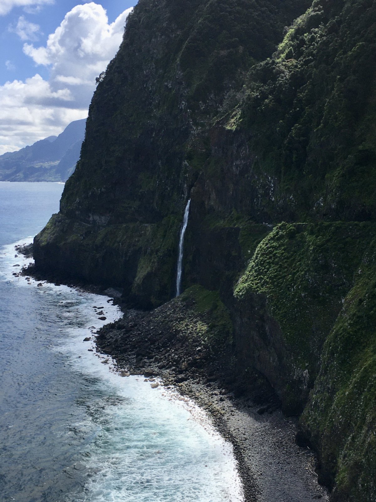✌️🌏 Druhý den , po výborné snídani v poloprázdném hotelu, vyrážíme na jednu z nejznámějších tras podél levády s názvem das 25 Fontes. Řídí Pavel.Původní dohoda byla , že se budeme po dni střídat, ale když jsem viděl jak bravurně zvládá místní provoz, stal jsem se spolujezdcem=závozníkem. Hlavní silnice(ve velmi dobrém stavu) jsou zejména podél pobřeží s odbočkami do vnitrozemí. Po cestě několikrát musíme zastavit. To se nedá slovy popsat!! Naprosto neuvěřitelná příroda, barevná, rozmanitá , vonící. Kocháme se a fotíme. Nejméně 150 krát zopakuji„ Ty vole, to je neuvěřitelný." Když nás navigace dovede na začátek trasy , parkujeme hned vedle krávy. Samozřejmě čtyřnohé. Úvod je po silnici a směrem dolů. Lidí je minimum. Asi po čtyřech kilometrech , začíná stezka a už tak krásná krajina ještě zezelená, všude okolo vlhkost, jak někde v džungli. Tekoucí voda podél cesty v betonovém korýtku zvaný leváda umocňuje tenhle zážitek. Následuje další tekoucí voda, tentokrát ze shora. Vodopád Risco je úžasný. Při zpáteční cestě jsme došli k bufetu u silnice, poseděli u kafe a začalo drobně pršet. Usoudili jsme, že těch pár euro za shuttle je výhodných a nechali jsme se vyvézt k autu. Kráva už tam nebyla a přestalo pršet. Na zpáteční cestě jsme se zastavili u vodopádu v městečku Ponta do Sol. Ten je zajímavý tím, že teče ze skály na silnici z výšky asi 25m a přístup k němu je oficiálně uzavřený. Jde se k němu přes kilometr, ale jak jsme zjistili, řídí se tím jen neznalí cizinci. Všichni ostatní tam frčí a dokonce zastaví pod ním , aby si umyli auta. My si však umyjeme pouze ruce , nafotíme tu krásu a jedeme dál. Poslední naší zastávkou byla Ribeira Brava, poklidné, přímořské městečko.
