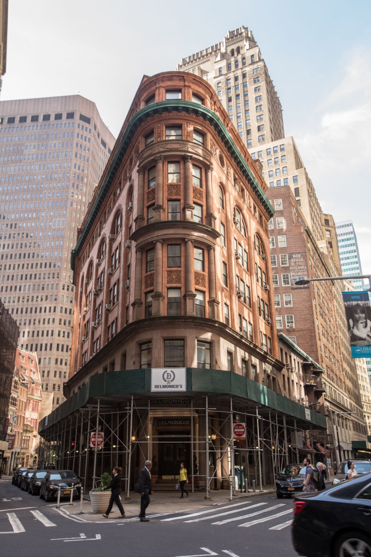Delmonico's - Dle mého názoru jedna z nejkrásnějších budov v New Yorku a možná na světě. Není nijak významná, na newyorské poměry je velmi nízká, ale je opravdu nádherná (viz obrázek). Třeba budete mít víc štěstí než já a jedinečný pohled na ni vám nebude narušovat lešení.