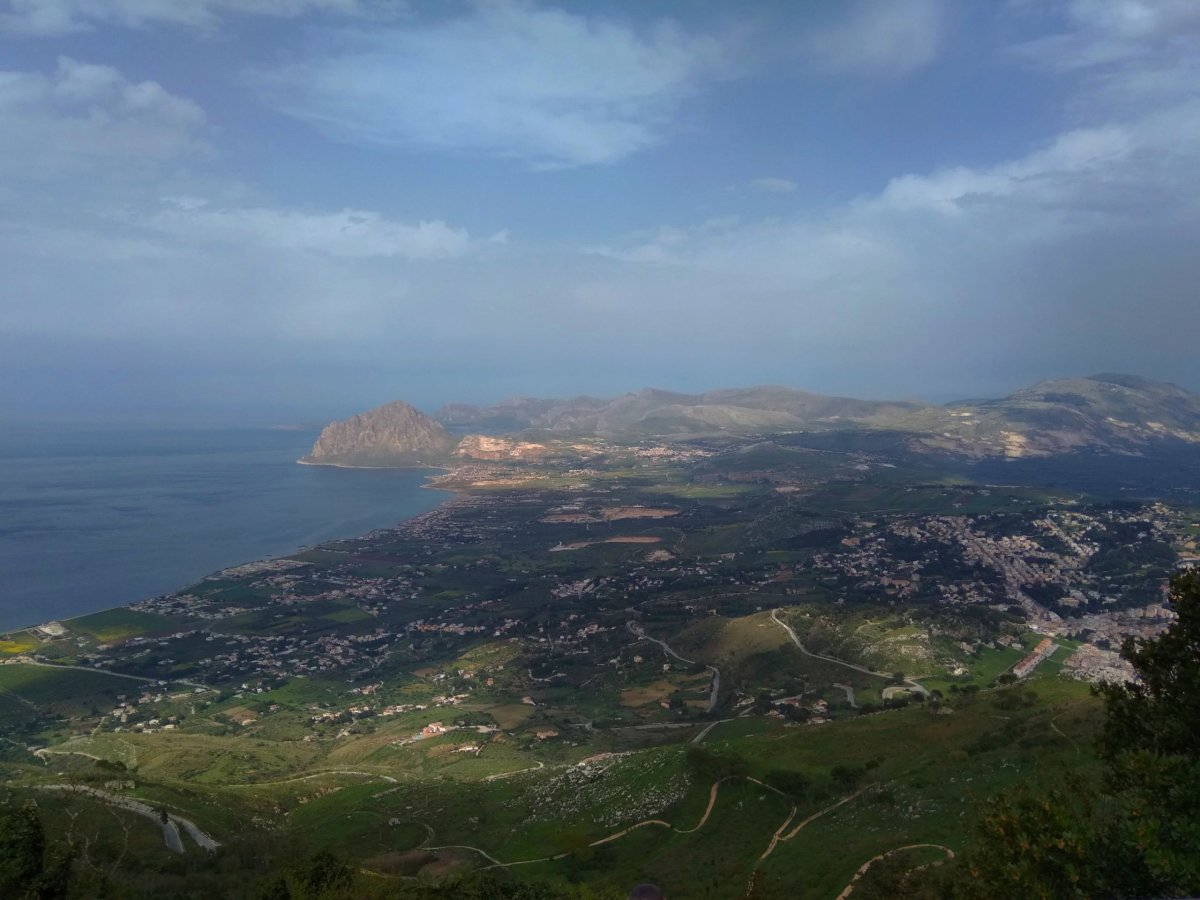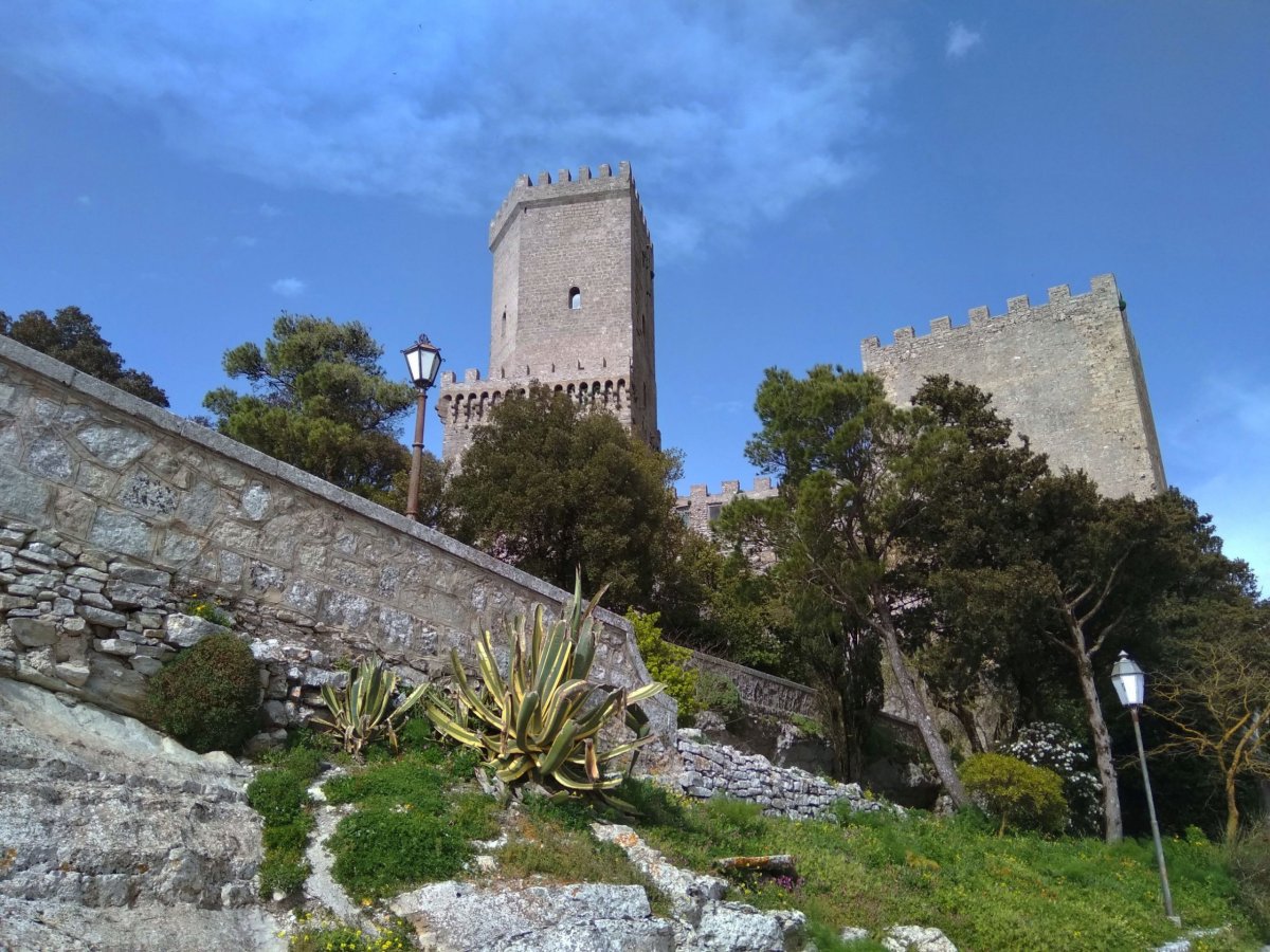 Po obědě jsme se ještě chvíli procházely úzkými uličkami, a těsně před cestou k autu jsme si s Péťou koupily zmrzlinu, protože Slunce už začínalo pěkně pražit i přesto, že byl teprve duben. Naším dalším cílem byla hora Erice, které leží sedm kilometrů západně od centra Trapani. Ještě před tím jsme se zastavily v našem provizorním domově, protože nás (zaplať pánbůh) napadlo, že ve výšce 750 metrů nad mořem asi zas takové teplo nebude. Cesta na vrchol hory byla velmi zajímavá, jelikož silnici převážně tvořily serpentiny, ve kterých se Italové vůbec nebojí přejíždět či jakkoliv nebezpečně manévrovat. To byl asi ten důvod, proč mělo každé auto alespoň jednu promáčklinu či jeden škrábanec. Nicméně jsme to zvládly, koupily si parkovací lístek na dvě hodiny a vyrazily prozkoumávat stejnojmenné staré město Erice.