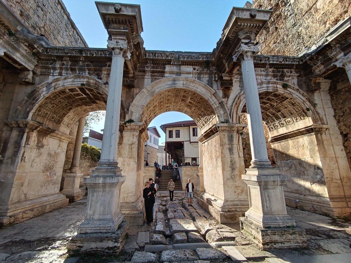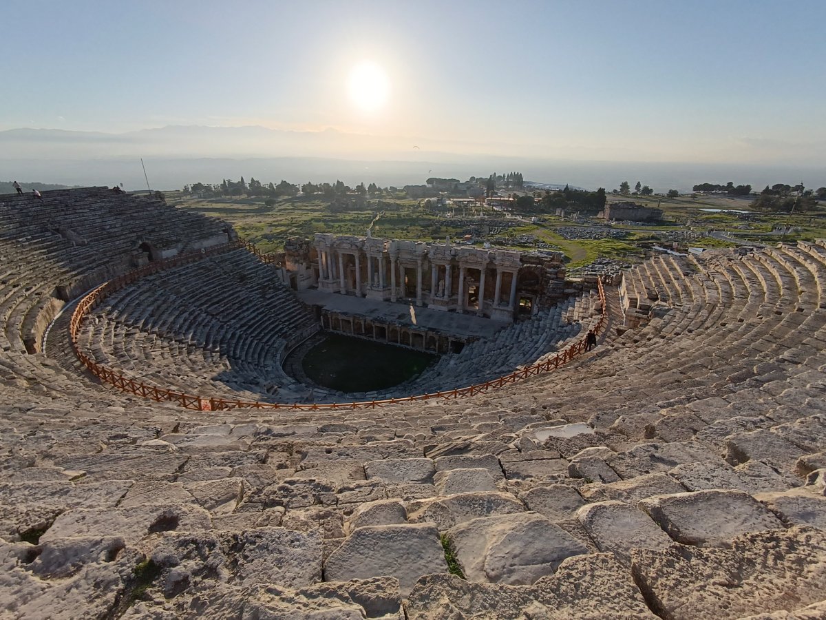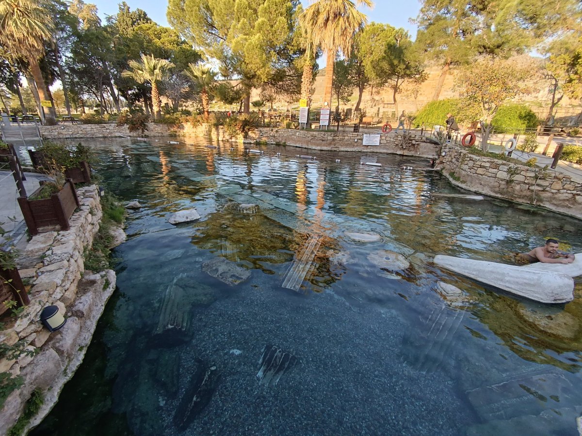 Parkujeme mimo hlavní parkoviště u silnice - zadarmo. Z balónu jsem viděla cestičku, kudy šlo do areálu vlézt bez placení. Zkoušíme to, ale jsme pomalí a hlídač nás odkloní k pokladně. Vstup je na ceny v Turecku dost vysoký - 30€ na osobu. Ale co se dá dělat. Jezírka jsou fakt fotogenická. Chtěla jsem si je natočit dronem - Zákaz letu dronů. Kluci nesmí kouřit - zákaz kouření a navíc i zákaz pití alkoholu... No... projdeme se jezírky a posedíme na lavičce. Konečně je teplo, a svlékáme ze sebe jednotlivé vrstvy. Ejzí sundá i neopren. K termálnímu bazénu s antickými sloupy se dostaneme až pozdě odpoledne a už se mi nechce jít pro plavky do auta. Trochu mi to mrzí. A dávám to mírně najevo. Projdeme místo toho zbytek areálu - Hierapolis - antické divadlo, nějaké ruiny a sloupy. V celku pozdě večer nastupujeme do auta a vyrážíme směr Antalye. Třetí nejnavštěvovanější město planety. Cesta je po dálnici, řídím. Nevadí mi to, provoz není. Během jízdy srazím nějaké přepravky, které ležely na dálnici. Snad bude auto v pohodě. Zastavujeme se na večeři v nějaké restauraci u silnice. Naše štědrovečerní večeře. Felix ode mně dostal pořádný uši. Okolo 23:00 přijíždíme na ubytování v Antalyi (Demak Suit & Homes) Máme krásný byt s balkónem za 695kč na noc.