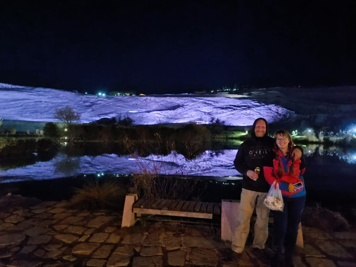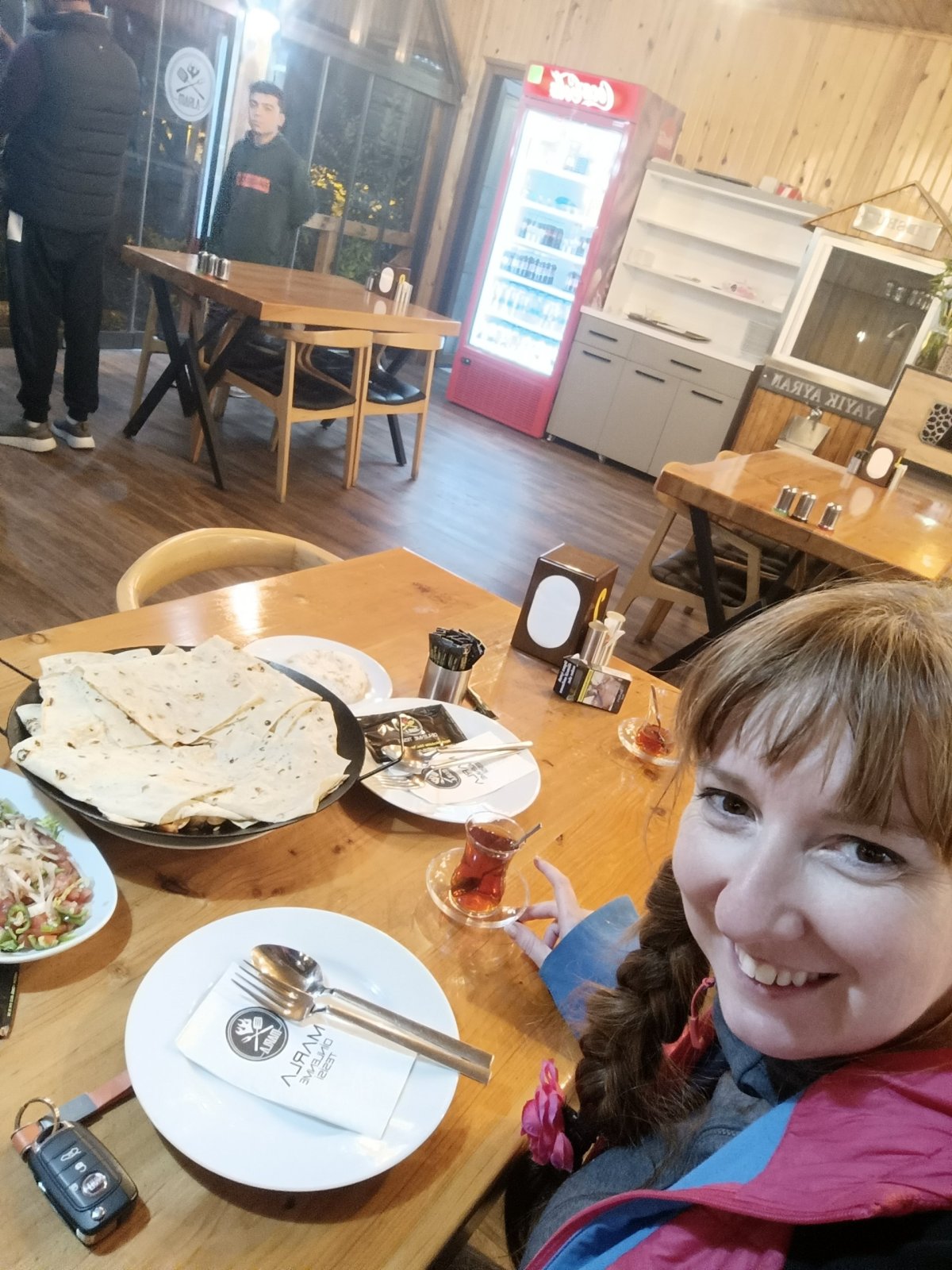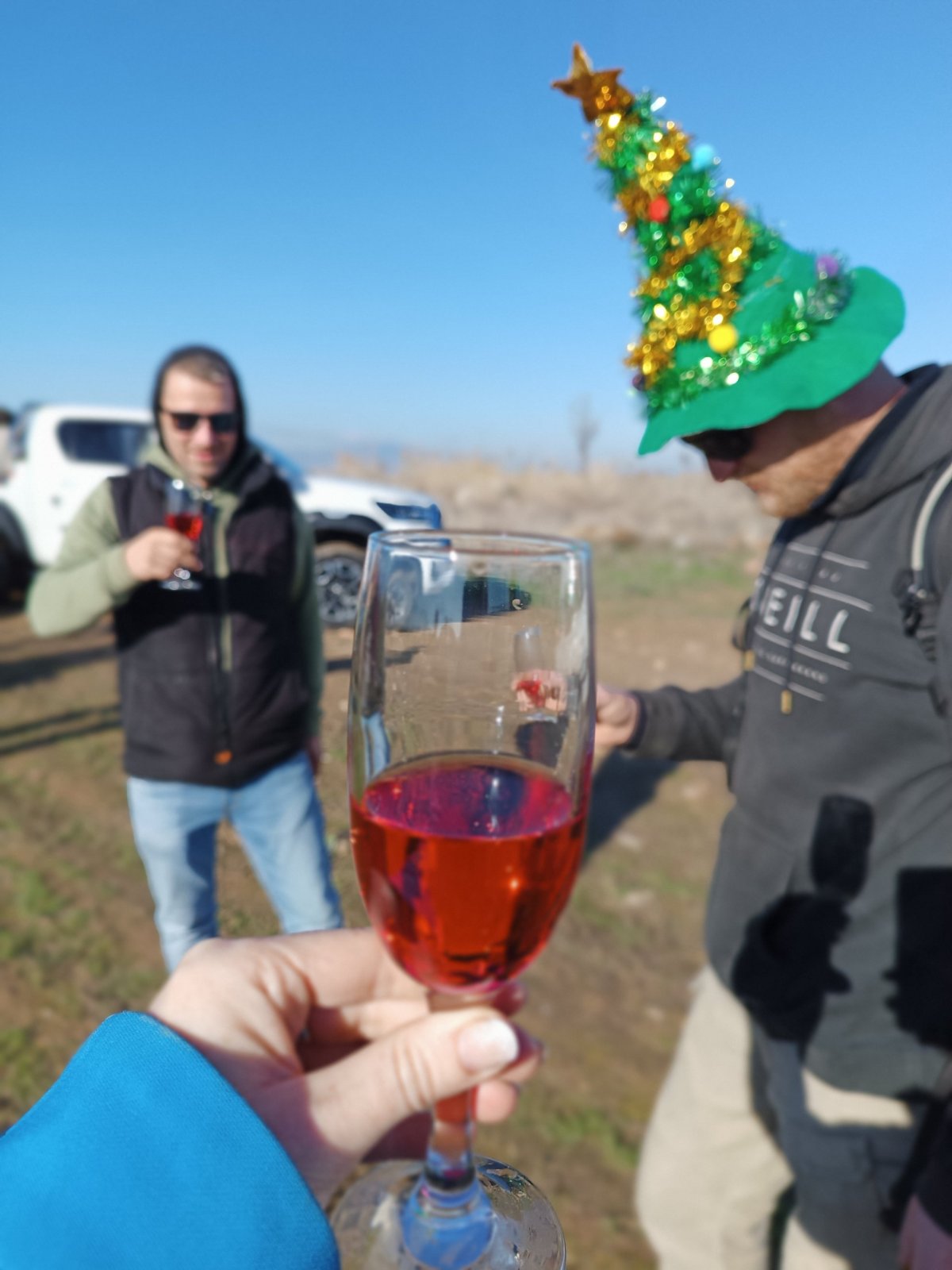 Při odletu nevládlo nad Bratislavou zrovna ideální počasí a tak jsme zůstali řádnou dobu uvězněni v letadle na runwayi a čekali na odlet. Ten nastal v době plánovaného přístání. Ty nízkonákladovky se občas nevyplácí. Po příletu jsme vyřešili půjčení auta a vydali se na první zastávku v centu Dalamanu- Alkohol House. Doplnili jsme zásoby na výlet a vyrazili směr Pamukkale, kde jsme chtěli strávit Štědrý den. Celou dobu jízdy jsme jeli po silnicích lepších než u nás. Situace na silnicích byla pohodová. Teplota okolo 18°c. Do Pamukkale jsme dorazili večer. Ubytování jsem našla cestou přes booking - Grand Atlas Hotel s parkováním před hotelem. Na hotelu byla šílená zima. Vlastně všude byla zima. Venku bylo tak 5 nad nulou... Personál hotelu nemluvil anglicky. Nějakým zázrakem jsem na ráno zvládla domluvit let balónem. V 7 nás nabere autobus před ubytováním. Platili jsme 60€ za osobu. Večer jsme šli na večeři - ani nevíme, co jsme si objednali - jídelní lístek byl bez obrázků a v turečtině.