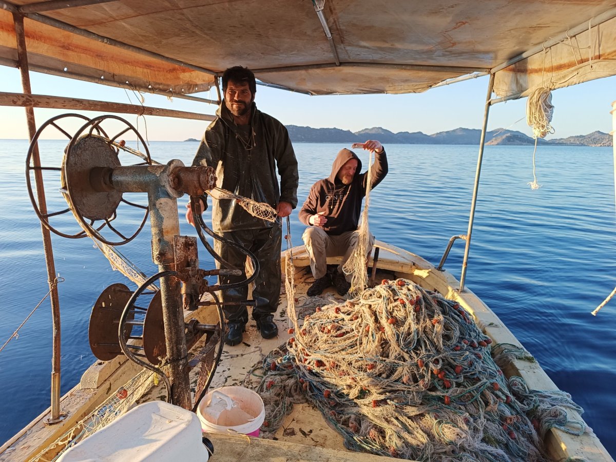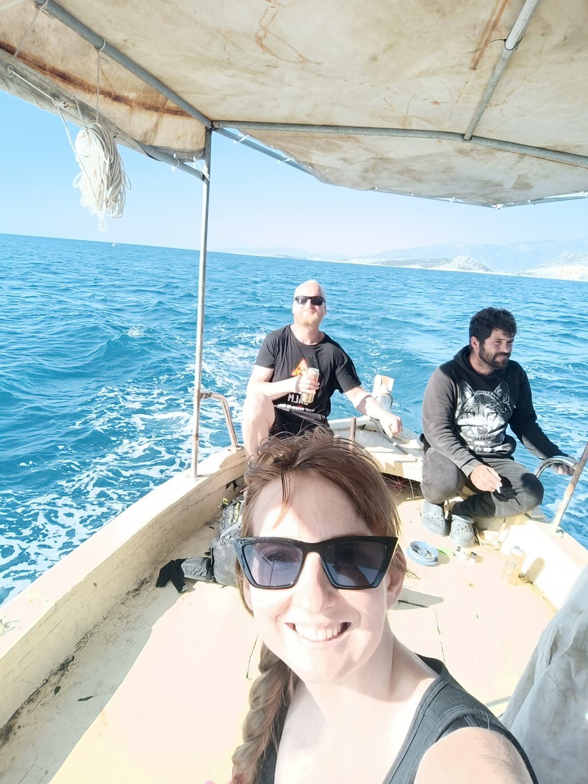 Budíček ve 2:30 ráno není nic, co by mě bavilo. Ve tři jsme v přístavu. Nikde nikdo. Píšeme Kapitánovi. Odepisuje, že je na cestě. Přijel za hodinu. Je tma a zima. Kdyby Ejzí nebyl tak nadšený, tak bych raději spala na pokoji jako Felix. Vyrážíme na moře. Po chvíli zastavujeme. Vypouštíme bójku. K ní je přivázaná síť. Má toho ale už hodně za sebou. Na konec půl kilometrové sítě přivazujeme další bójku. Odjíždíme do zátoky. Ejzí se snaží komunikovat s naším Kapitánem. Je mu asi 35-40 let. Ukazuje nám fotku své ženy. Má jachtu, kde vozí turisty. Tuhle rybářskou loď má po tátovi. Rybaření ho baví. Ejzí se několikrát ptá, kolik chytneme ryb. Odpověď je nejistá. Když Ejzí říká něco o "500 kilo ryb" dost ho to pobaví. Prý je blázen. Ejzí využívá celou svojí anglickou slovní zásobu. Po hodině už těch 100 slovíček zvládnul zopakovat několikrát. Už mi to moc nebaví. Ani moc netuším, co děláme. Čekáme... ale na co? ... Kapitán vaří další kafe. Až dopije, tak vyrazíme. Super. S východem slunce začínáme tahat síť. Jo, tak je to dobrý... romantika, až kýčovitá. Úlovek nebyl z největších. Kapitán tahá přes navijáky sítě a Ejzí ze sítě vybírá úlovky. Jedna kreveta, jedna větší a delší tmavá ryba a asi 20 nějakých čudel. Okolo deváté se vracíme na ubytování. Snídáme, balíme věci a vyrážíme směr Soutěska Saklikent.