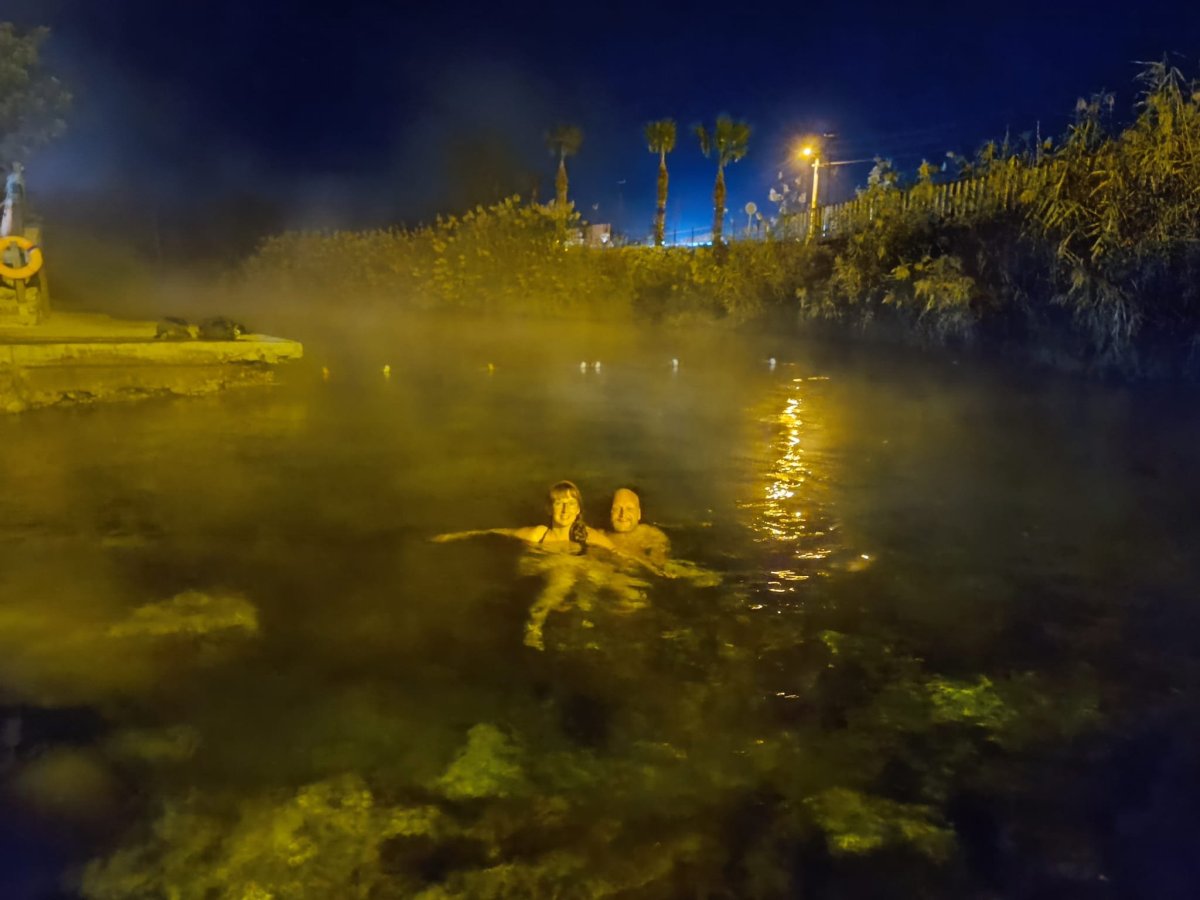 Jedeme zpátky na začátek naší trasy. Do Dalamánu. Objednávám ubytování hned u letiště. (ESKA 121 Airport - za 401,-kč). Majitel je hodně zvláštní. milý chlapík. Měl rozkoukaný film a rozjedenou večeři, když jsme přijeli. Nechal nám svůj byt a odešel o patro výš. O čistotě se na ubytování nedalo mluvit. Ráno jsem litovala, že jsme něco nepřiplatili. Koupelna letos umytá nebyla určitě... v letech předchozích asi taky ne. Felixe zase nejvíc trápí nepořádek v kuchyni. Ale za ty peníze.... necháme tam věci a jedeme směr centrum . koupit si nějaké jídlo na zbytek pobytu. A pak máme v plánu zastávku v sirném jezírku. Sirné jezírko je opravdu honosný areál. Parkujeme u vrátnice. Vrátný je fajn chlapík, co nás vítá. Můžeme se koupat kde chceme. Voda má 28 stupňů. Mají otevřeno do půlnoci. Během koupání se na nás přijde podívat. Voda je dost smradlavá, ale teplá, tak si užíváme. Asi po hodině se přesouváme na ubytování, balíme věci a brzy ráno jedeme na letiště, abychom vrátili auto a vyrazili směr Bratislava.