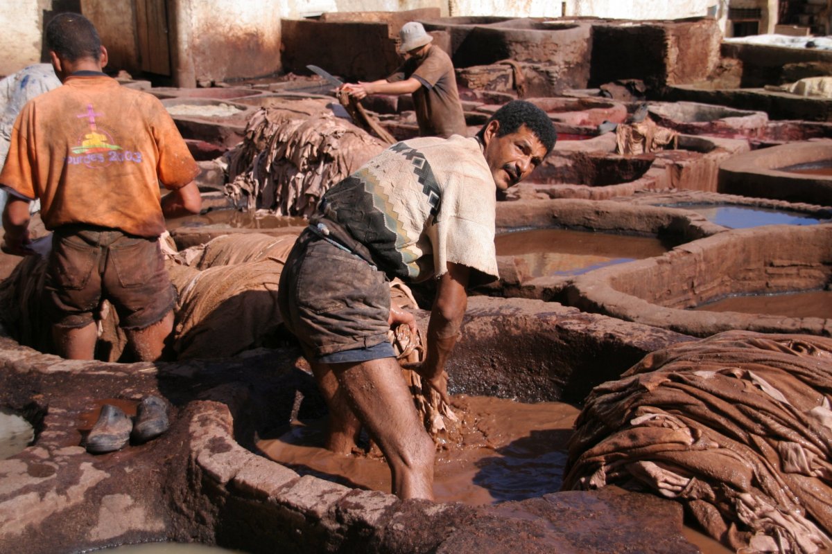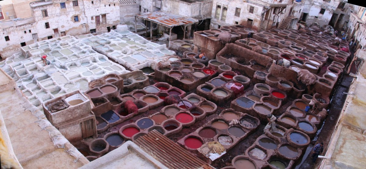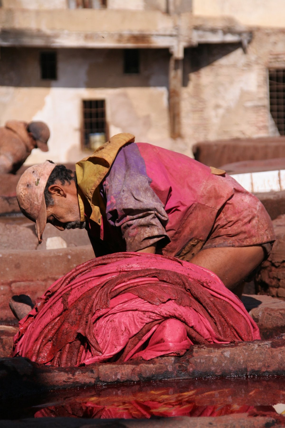 Trávíme zde příjemné tři dny a obdivujeme všechna možná řemesla včetně vyhlášených barvíren kůže (tanneries). Procházíme bazary, občas se ozve hlasité "Attencion" a projede kolem nás osel s nákladem do některého obchůdku, což moc nechápeme, protože pro nás vyhublé Evropany je průchod některými uličkami dost úzký. Dáváme masáž v místním Hammámu Bain-Mernissi kousek pod hotelem. Je to velký zážitek, série bíle vykachlíkovaných místností o různých teplotách s děravými klenbami, plné chlápků co se jen tak válí v páře nebo polévají vodou. Masér mě položí na mramorovou podlahu a pak se mi snaží vylámat všechny končetiny a ještě se po mne prochází - uff to je masáž. Pak začíná drhnutí a znovu a zase... sotva se plazím ven, ale cítím se báječně. Odpoledne jsou hodiny pro ženy, takže teď pro změnu mučí Markétu. Jsem moc zvědav co tomu řekne. A už jde, prý byl Hammam plny prsatých tlustých žen nahoře bez :)