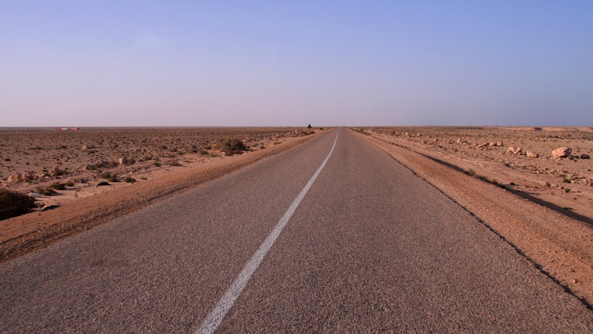 Krajina kolem je neutěšená pustina. Nic co by stálo za zmínku, jen rovina pokrytá prachem a pískem bez dun a bez nejmenších terénních zlomů. 1200km na sever jen tři města stejného významu jako Dakhla a hodiny a hodiny nekonečné prázdné krajiny. Sem tam jako zázrak se pase velbloud na trsu bodláčí. Cesta místy jede podél Atlantiku. Zde poušť přechází přímo do moře, žádný zelený pás či terénní zlom. Pouze několikametrový útes tvořený z hlíny a písku. Tisíc kilometrů táhnoucí se písečná pláž. Ohromné vlny. Kolem obydlí nekonečný smrad zdechlých ryb. To je obraz země, zvané Západní Sahara. Země, kterou Španělé opustili v polovině sedmdesátých let a než si stihla vytvořit vlastní stát byla obsazena Marokem a Mauritánií