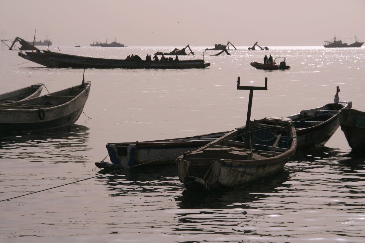 Rybáři vyjíždějí v krásných malovaných pirogách na moře a vracejí se s nákladem zpět. Další vykládají ryby v přenoskách a třídí je dle velikosti. Tržiště je hned za rohem. Vše by vypadalo idylicky, nebýt všude okolo rezivějících vraků velkých nákladních lodí táhnoucích se podél celého zálivu. Pocit jako z apokalyptického filmu. Policajt mě ujišťuje, že zde fotit smím jedině s povolením, které nemám a nezískám. Mám štěstí, že mi nemaže těch pár snímků co jsem stihl udělat, než přišel.