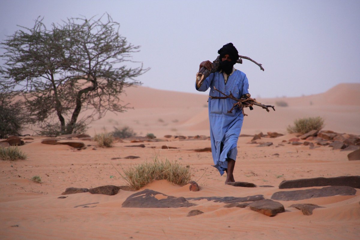 Cesta je bez problému. Jedeme relativně luxusním busem ve druhé řadě. Otáčím se a zjišťuji, že všude za námi jedou lide v nádherných velkých turbanech, tolik typických pro Mauritánii. Po západu slunka začínají být turbani poněkud nervózní a musíme zastavit. Všichni vyskakují na krátkou modlitbu uprostřed pouště. Modlitbu 5x denně zde nikdo nevynechává. Ať se děje, co se děje. Jak zazní muezzin z rádia, všichni kleknou hlavami k zemi.