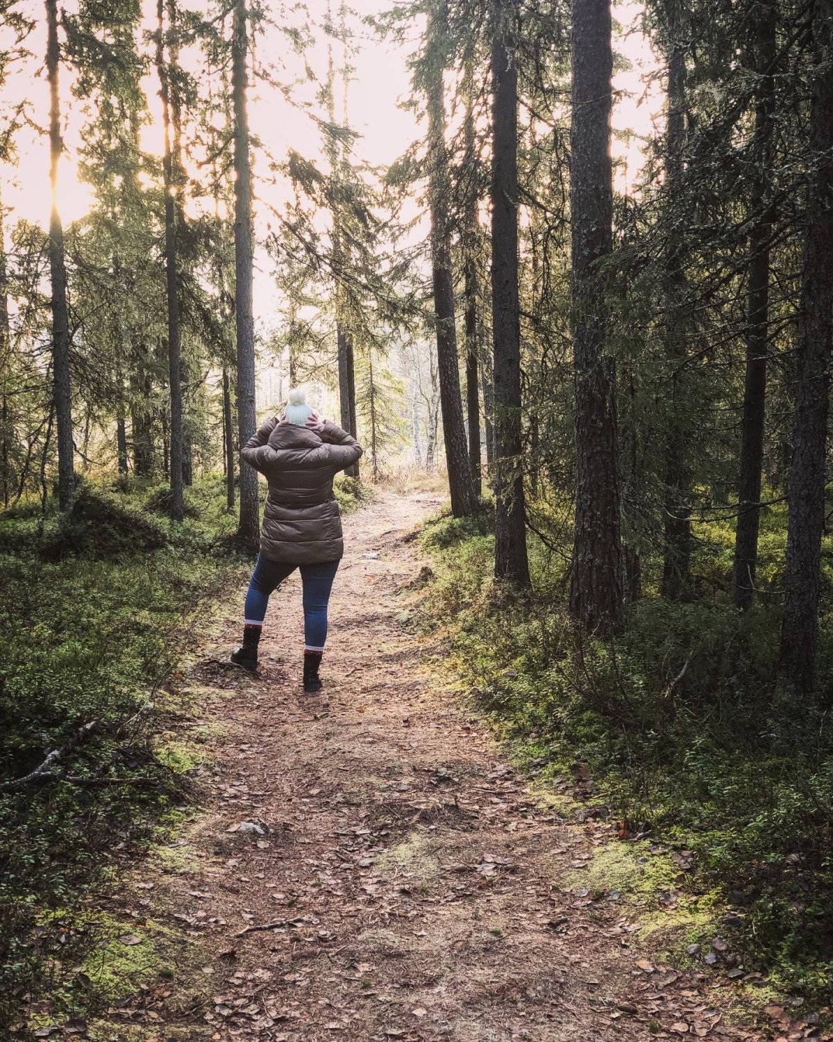 Druhý den ráno jsme vyrazily na místo zvané Ounasvaara. Je zde lyžařské středisko, ale když půjdete dál do lesa, najdete zde krátký trail. Název máte na fotce, přepsat to... no nemám na to úplně nervy :) Ounasvaara se nachází vedle Rovaniemi za mostem. Trail, jak jsem již psala, je krátký, ale je to velmi krásná procházka.