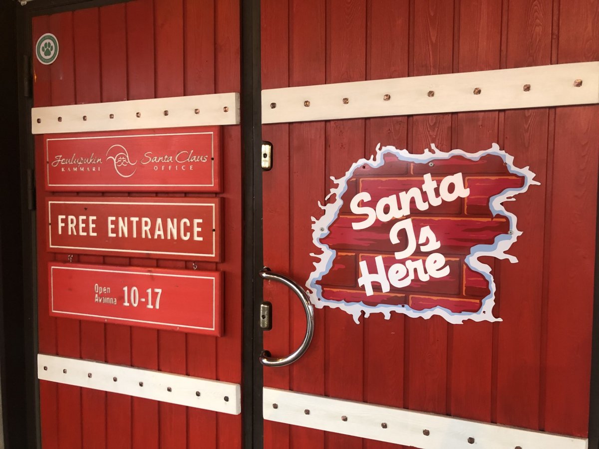 Santa Claus Village je asi nejvyhledávanější atrakcí v Rovaniemi a okolí. Už v letadle z Londýna sem bylo nespočet malých dětí. Vstupné se neplatí, ale platíte za "zážitky". Nejprve je menší pasáž s obchůdky prodávající suvenýry, informační kiosek a jídelna. Mamka rovnou nakoupila pohlednice, napsala dětem, co máme v rodině "jakože hou hou, já jsem Santa Claus" a nechala si pohlednice orazítkovat speciálním Santovským razítkem. :) Já si mezitím dala jídlo v jídelně.