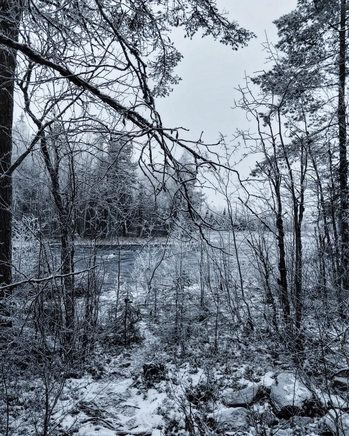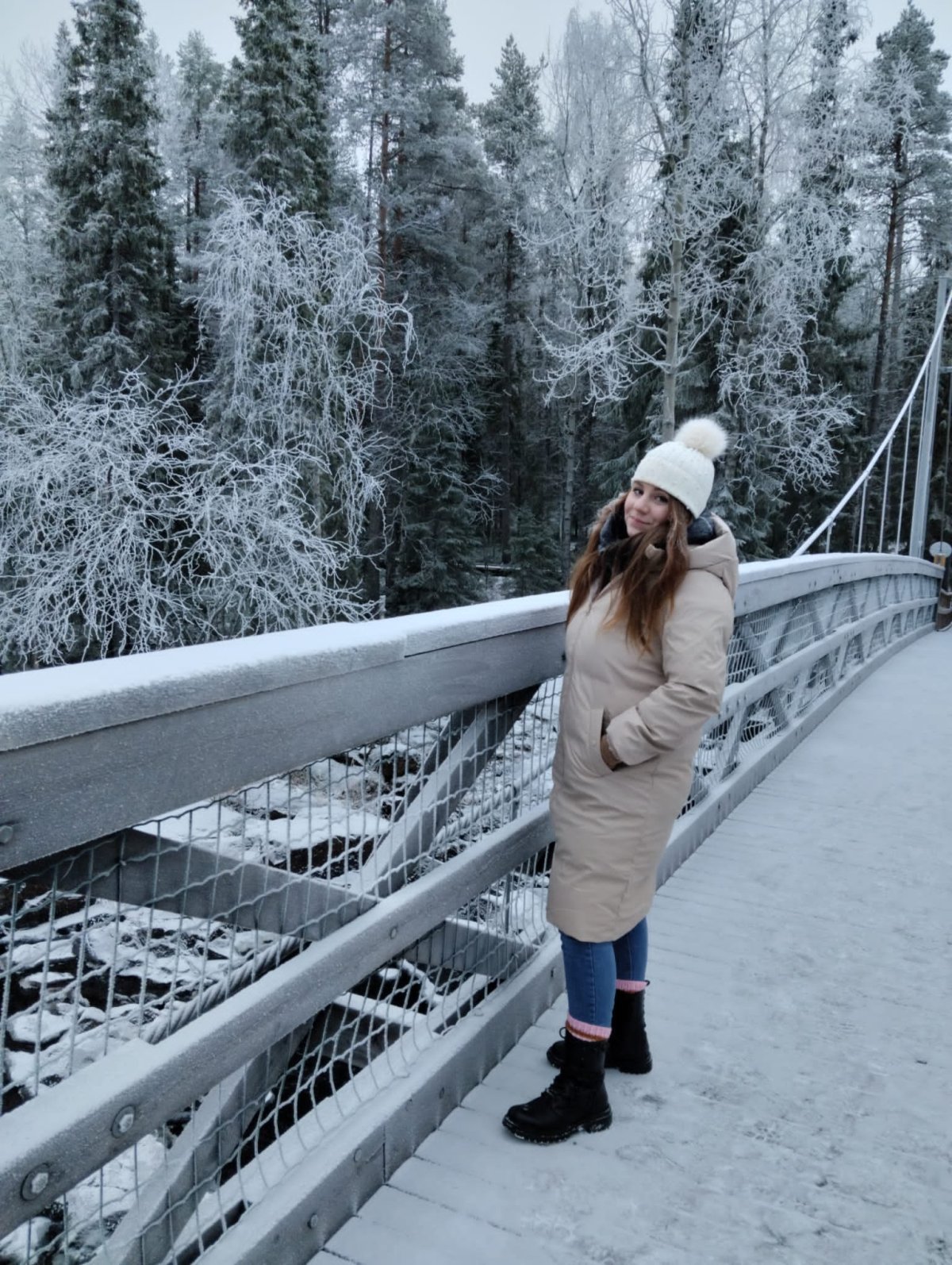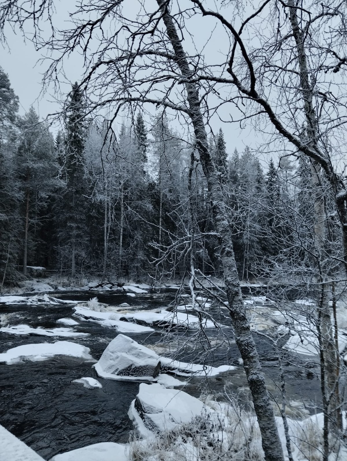 Poslední den - co bych k tomu řekla.. No, byla to třešnička na dortu zalitá adrenalinem. Moje známá žila v Laponsku nějakou dobu, takže mi doporučila toto místo. Ve finštině (lépe se o tom pak hledají informace) - Napapiirin retkeilyalue. Podle fotek boží místo na zakončení této cesty. Opět jsme došly pěšky do města a čekaly asi půl hodiny na zastávce na autobus. Byla ten den velká zima (-14) a sněžilo. Řidiči jsem na google maps ukázala zastávku, kde bychom potřebovaly vystoupit, zda sem jede. Chvíli mlčel, přemýšlel (to mi už bylo lehce podezřelé) a pak tedy usoudil, že ano. Zaplatily jsme asi 30 euro za jednu jízdenku a vyrazily.