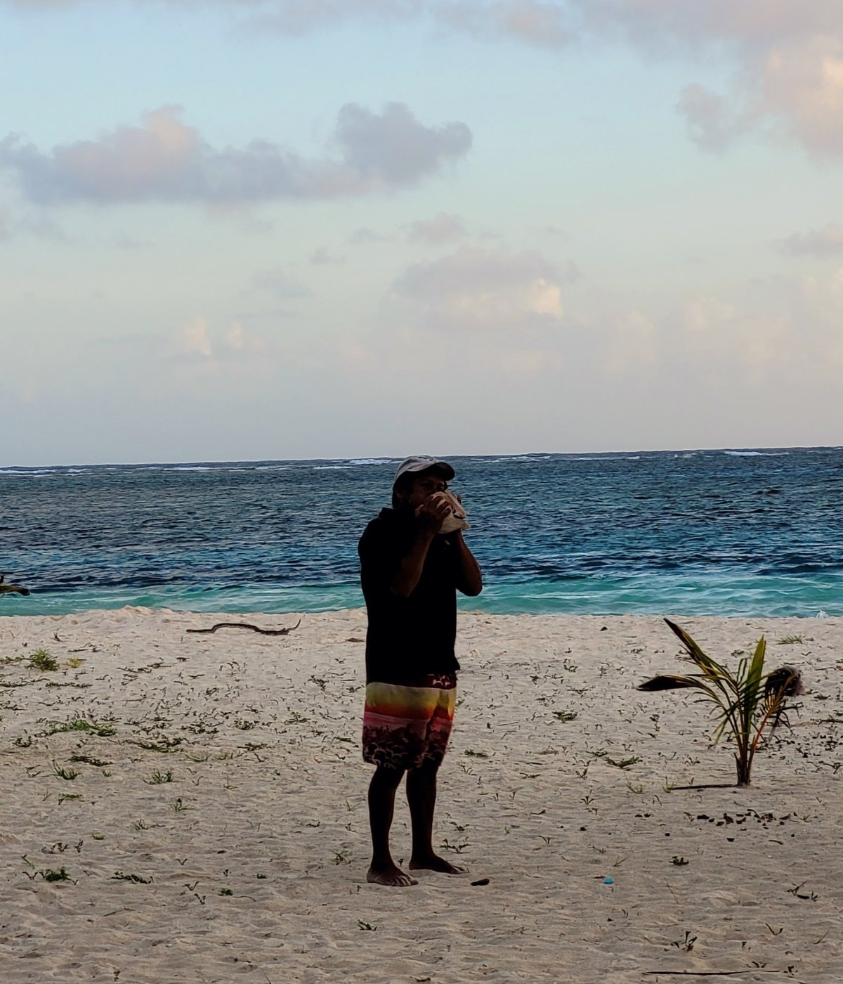 Houkáním na mušli indián oznamuje hotovou snídani, odplutí lodi na pevninu, oběd, odplutí lodi na výlet a večeři. Problémy zbytku světa zde neexistují. Jedinou starost kterou mám, je hlídat si, aby mi nespadl kokos na hlavu. Jsou to pořádné rány. A samozřejmě, abych neprošvihl houkání :-)