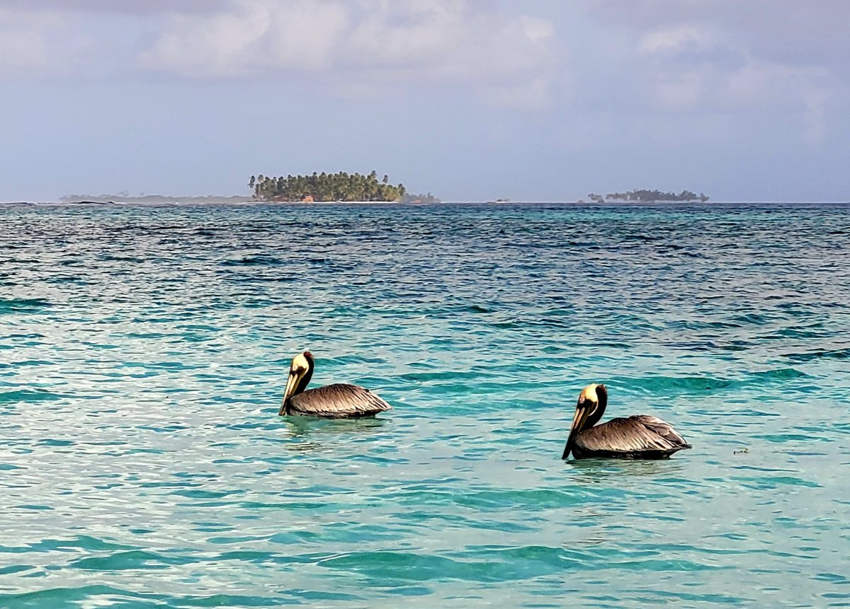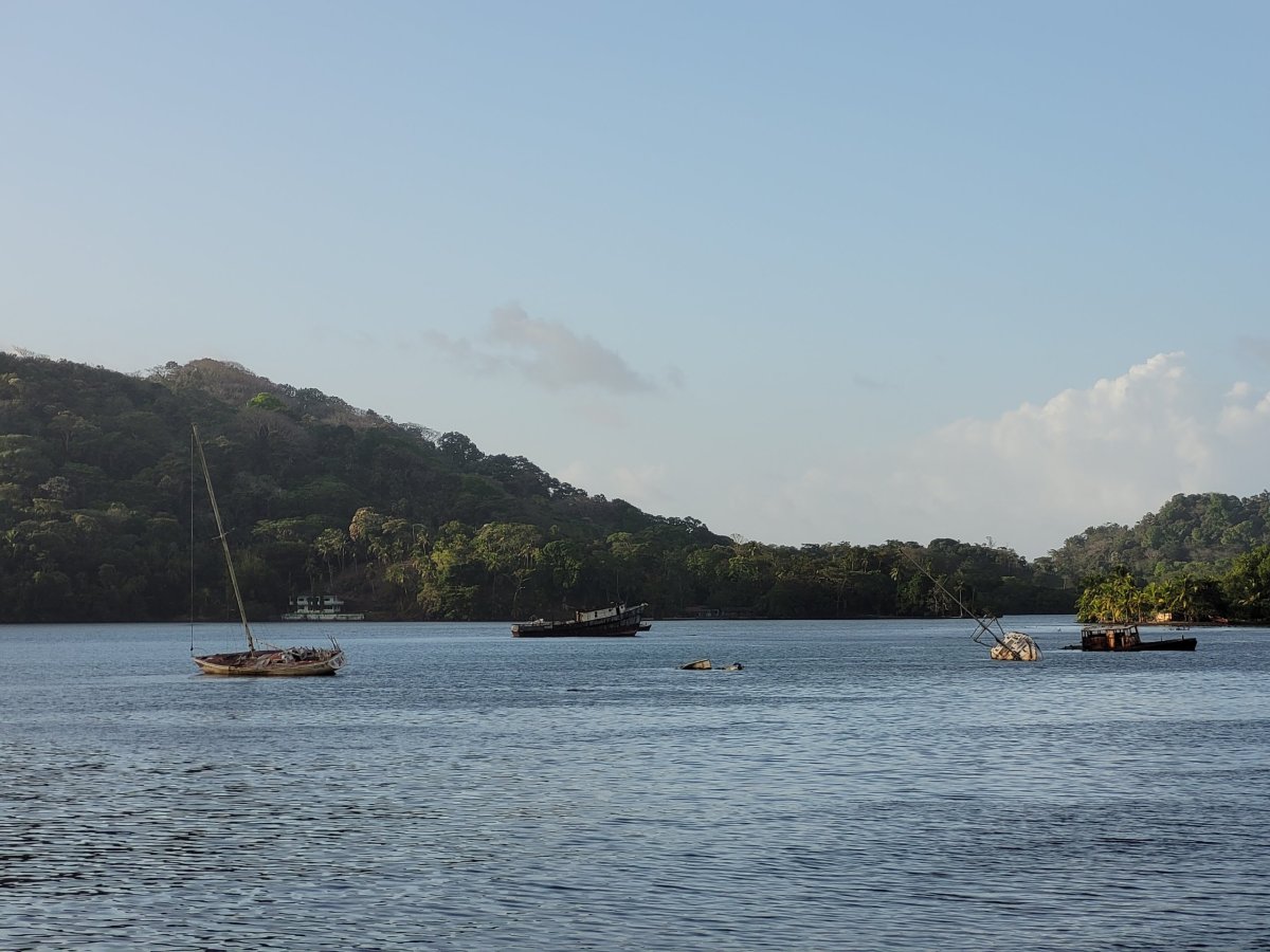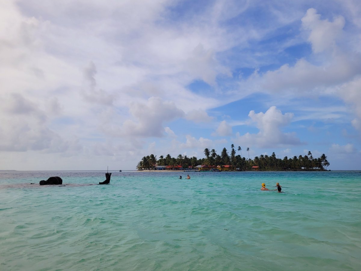 Několikahodinový výlet nás zavedl na šnorchlování ke korálovým útesům plných ryb, na výjimečnou mělčinu daleko od jiné země a na ostrov Isla Perro. Je to malý ostrůvek plný lidí. Připadám si tu jako na Mácháči. Ale je tu při hladině veliký vrak lodi, který stojí za průzkum. Šnorchlovací vybavení nám půjčili naši domácí.