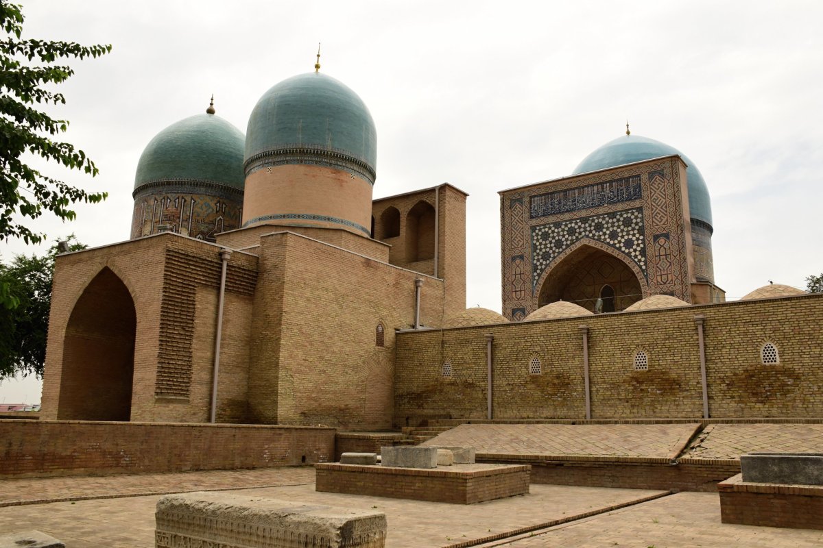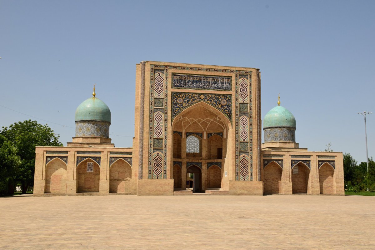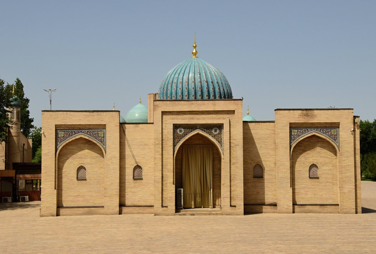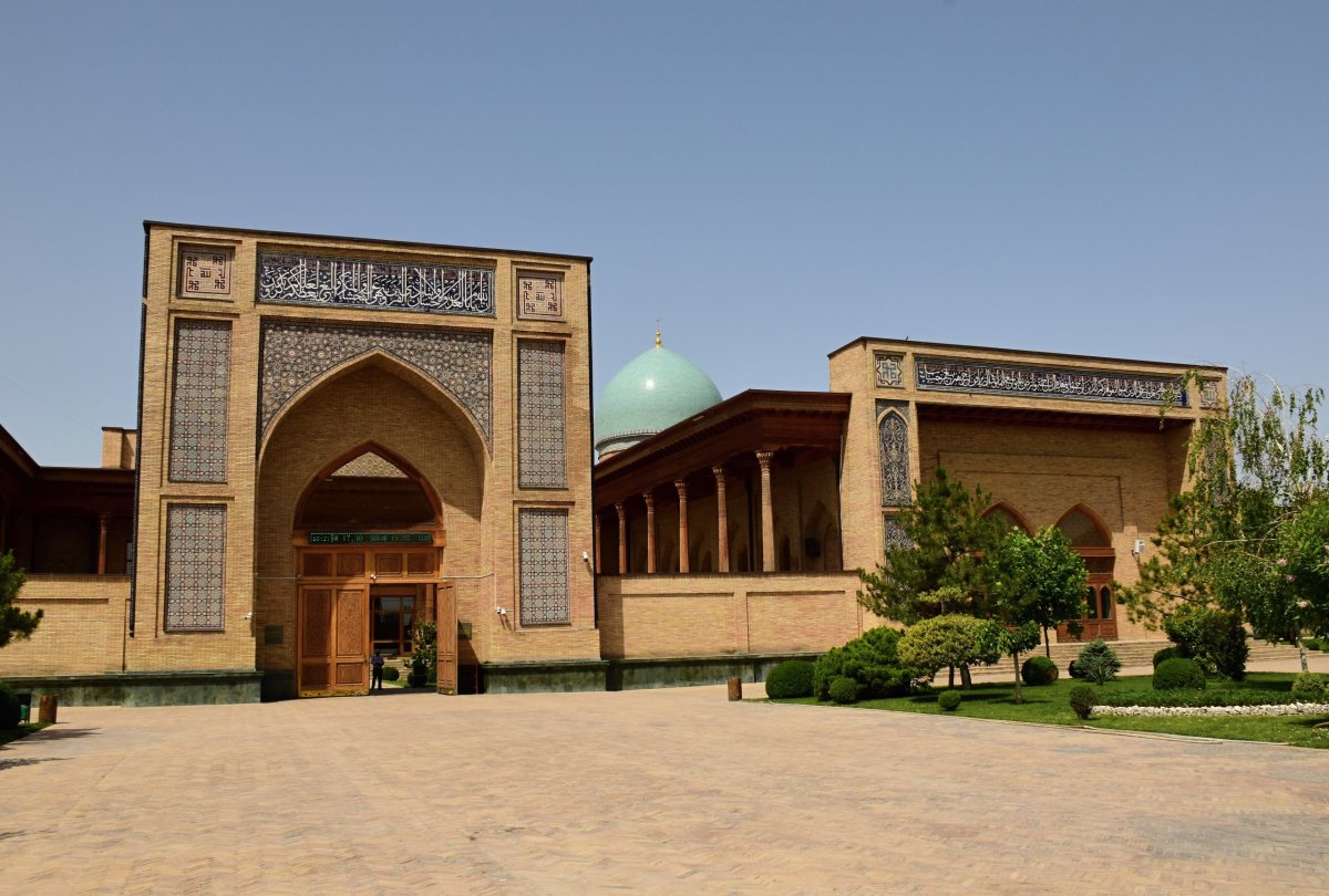 Taškent postihlo v roce 1966 zemětřesení, které poničilo velkou část města. Bohužel i mnoho historických budov. Ale něco přece jenom zůstalo a proto vyrážíme do náboženského komplexu Hazrat Imam. Nejdřív prohlížíme mešitu, pak kupujeme vstupenky za 30 000 UZS do medresy Muyi Mubarak, kde je nyní vystaven údajně nejstaší korán na světě. Ale asi se nejedná o nejstarší Korán na světě a není to ani slavný Uthmanský Korán. Ví se však jistě, že je velmi starý (8. století) a že z něj zbyla jen třetina původního.
