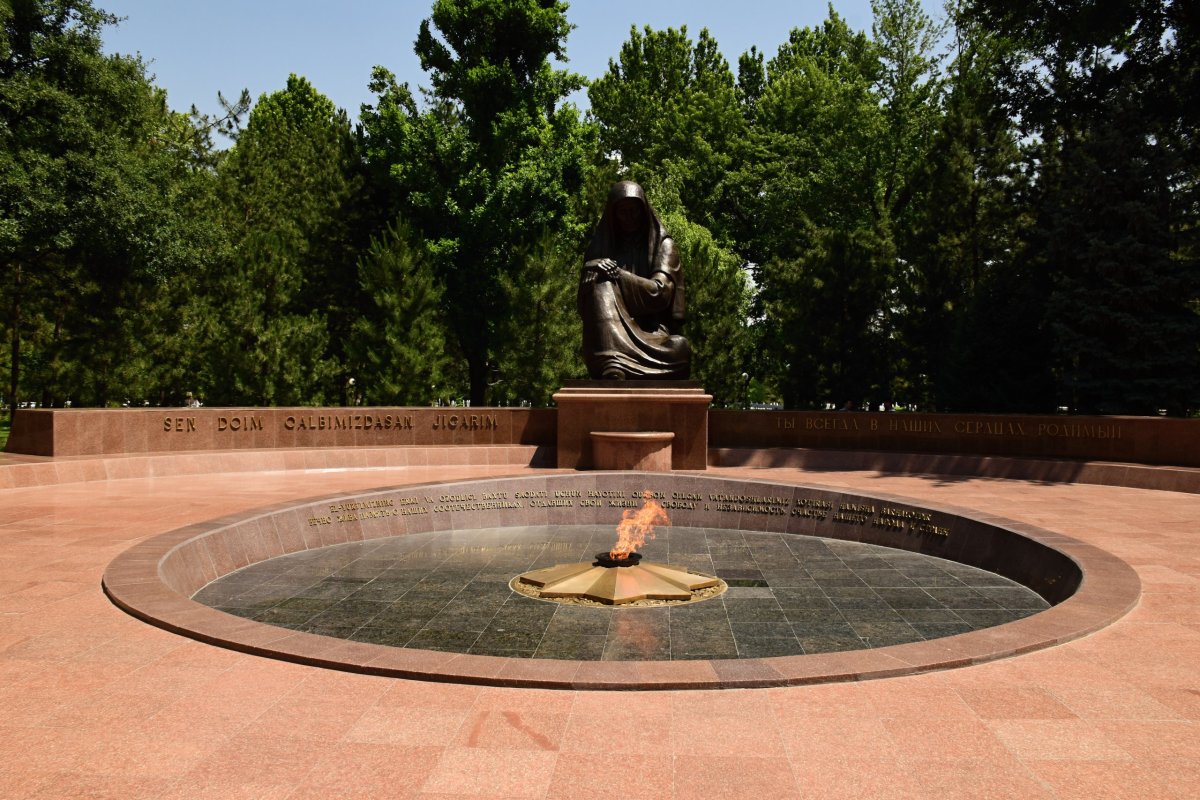 Pak se přesouváme na tržiště Čorsu bazar. Je to rozsáhlá plocha plná stánků, kde se prodává všechno možné. Uprostřed trhu je vlastní budova bazaru, která vše nepojme a tak jsou stánky rozprostřené do širokého okolí. Tady také ochutnáváme svůj první uzbecký šašlik. Když se prodereme davem lidí a najdeme stanici metra, odjíždíme na náměstí Nezávislosti, které nám připadá zcela nezajímavé. Jdeme alespoň k soše Truchlící matka, což je památník padlých vojáků v minulých světových válkách.