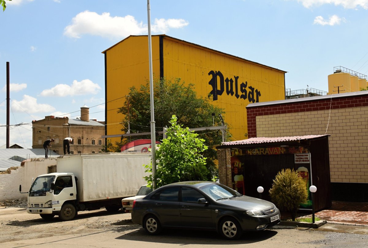 Další zajímavost, zejména pro nás Čechy, je pivovar Pulsar. Ten v roce 1999 koupil Jan Dohnal a spolu s místním podnikatelem Zafarem Maksudovem vytvořili česko-uzbecký pivovarnický koncern a vaří tam pivo podle české receptury. A musím říci, že toto pivo mi chutnalo. Kupoval jsem ho v PETkách 2,25 litru. Kousek od pivovaru je restaurace Zlata Praha. Protože jsme tam byli dopoledne, dali jsme si tam jen místní pivo s názvem Zlata.