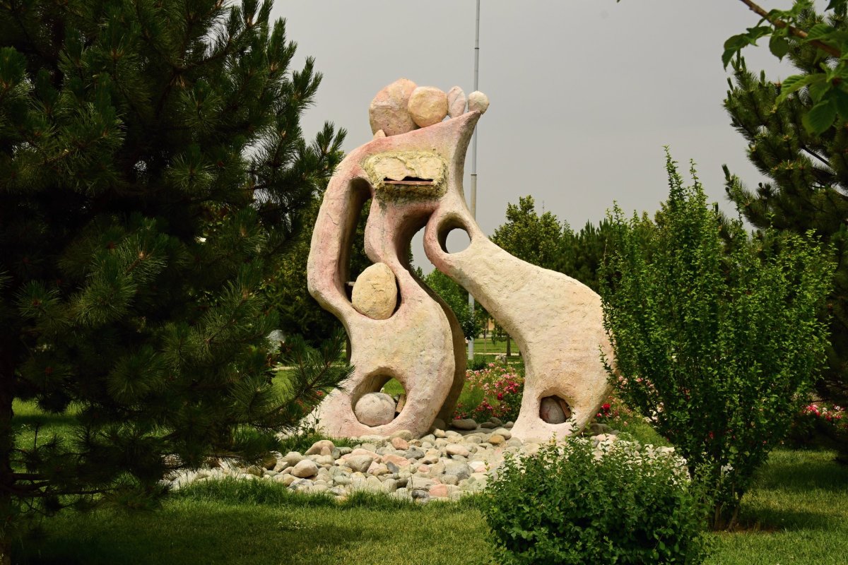 Procházíme krásně upraveným parkem na sever, kde je letní palác Timura. Park je hezký, mají tu i nějaké moderní sochy. Je zvláštní, že zde nemají nějakou společnou vstupenku, ale do každého komplexu chtějí vstupné 30 000 UZS. Do komplexu Dorut Tilovat a mešity Hazrat Imam se to dá ještě pochopit, ale kdo tam pojedete, do letního paláce Timura si vstupenku nekupujte. Jednak tam skoro nic není a druhak to jde obejít zezadu a tam už vstupné nevybírají. Z letního paláce toho moc nezbylo.