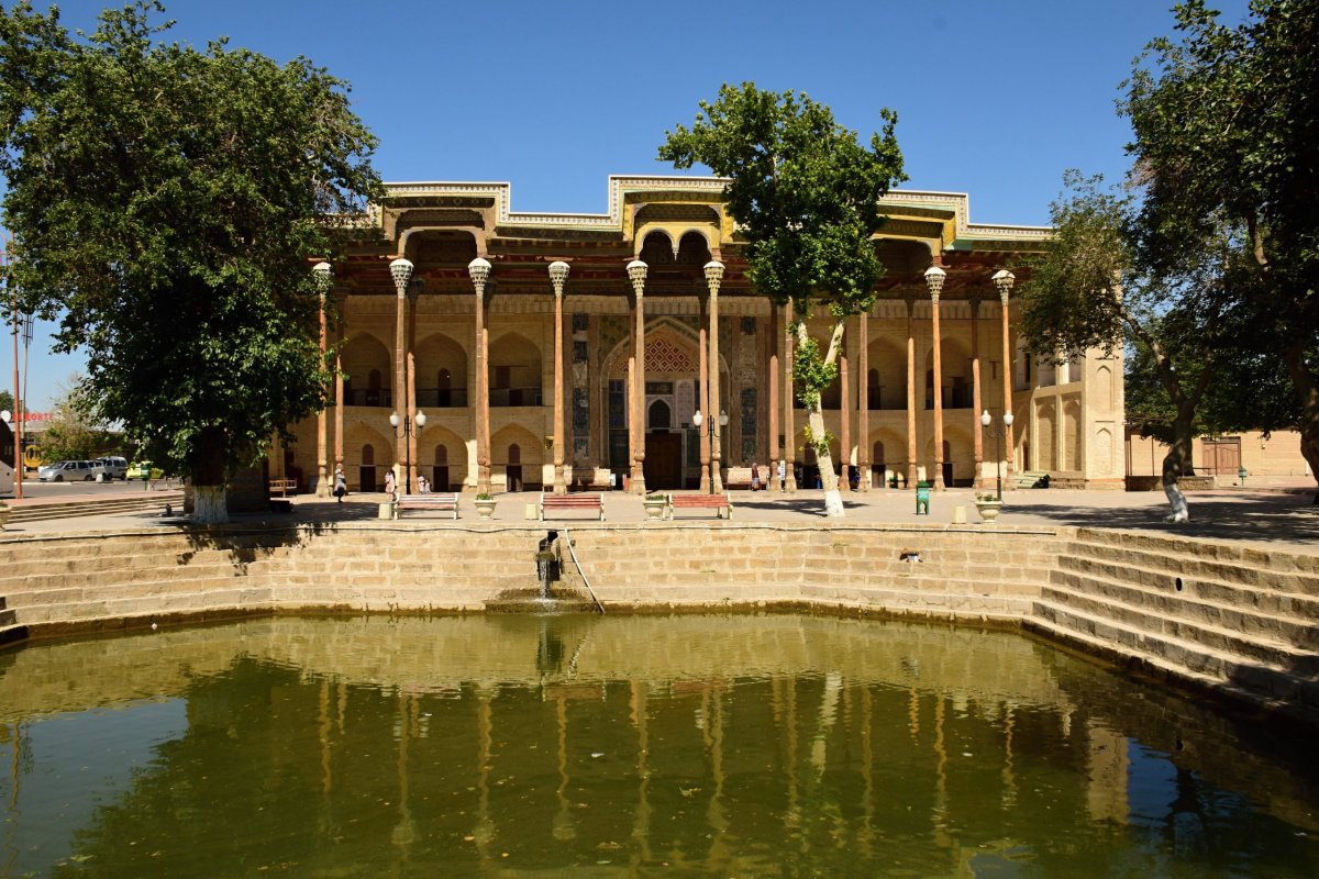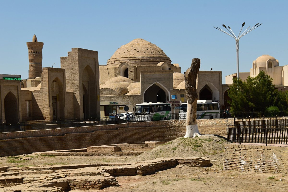 Buchara bylo důležité obchodní, kulturní a duchovní centrum na Hedvábné stezce v údolí Zeravšánu. Zachovalo se zde velké množství starých staveb. Proto je historické centrum Buchary zapsáno na Seznam světového kulturního dědictví UNESCO. Všechny památky jsou poměrně blízko sebe, takže vše lze absolvovat bez problémů pěšky. Prohlídku začínáme u mešity Bolo Haouz z 18. století. Bohužel na dveřích je velký zámek, který tam byl i při další cestě kolem. Takže jsme si mohli prohlédnout jen vstup s dřevěnými sloupy. Dále pokračujeme k mauzoleu Čašma Ajub, které je postavené nad pramenem a nyní je v něm muzeum získávání vody. Příští zastávka je u mauzolea Samanidů z 9. století. Je to nejstarší dochovaná islámská stavba Střední Asie.