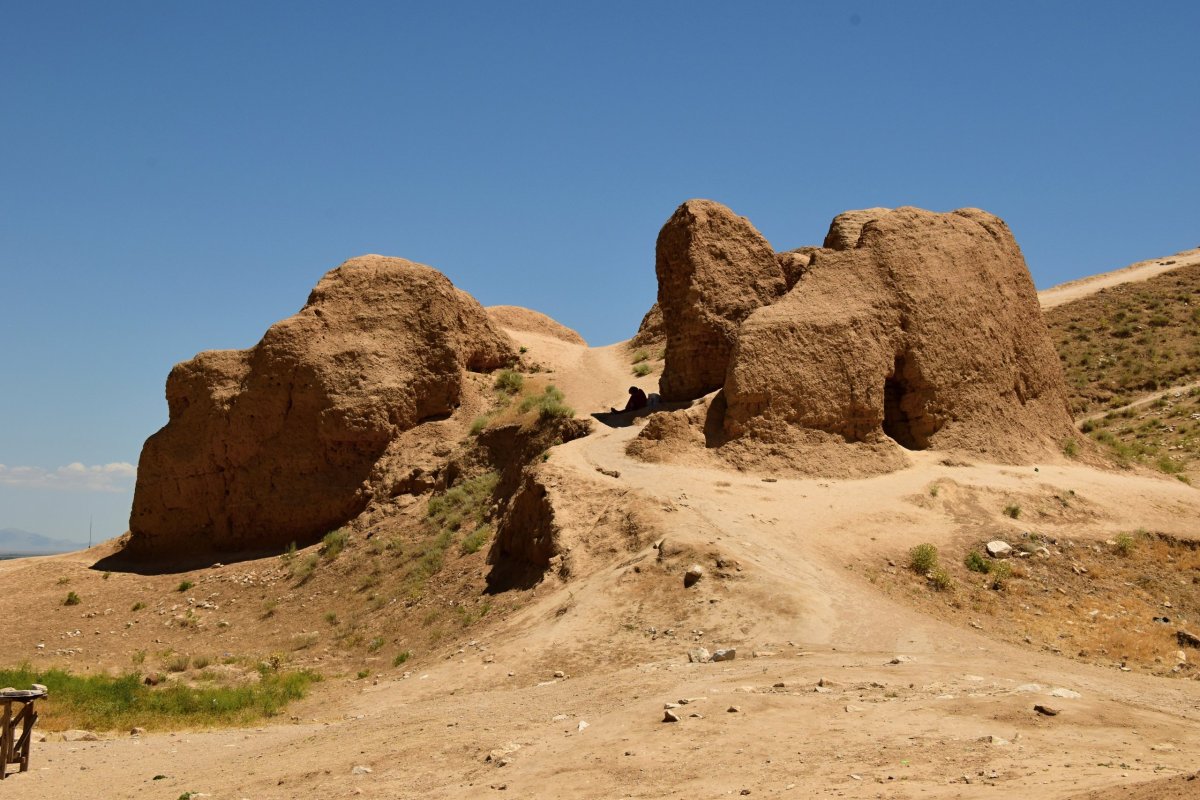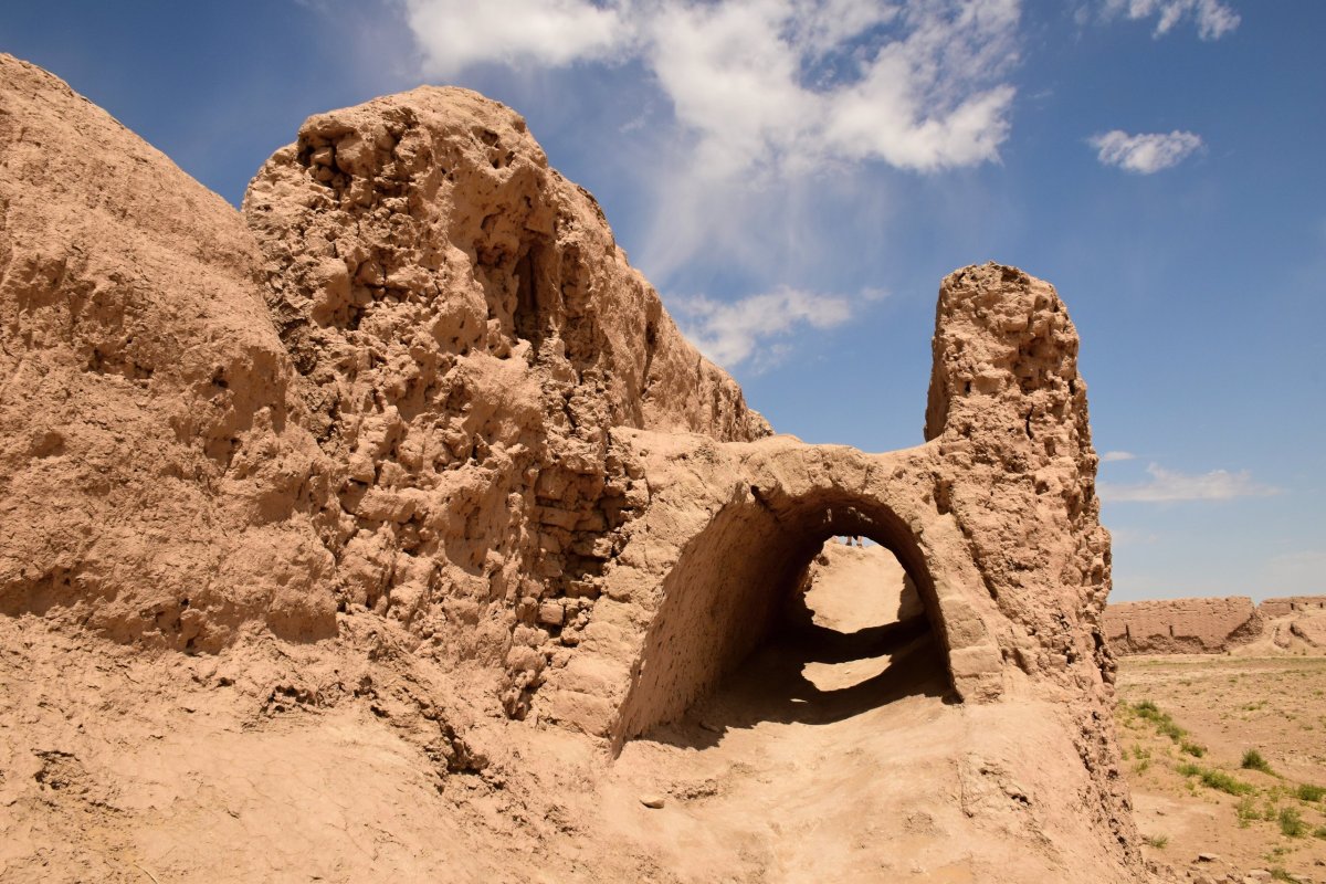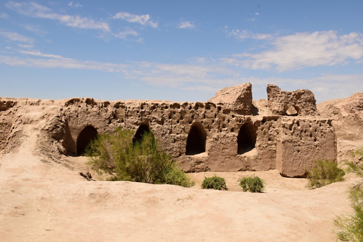 Velkou část Uzbekistánu pokrývá poušť Kyzylkum. V části nazvané Ellik Kalin vzniklo několik desítek hliněných pevností. Z nich se už moc nezachovalo a i na těch co ještě stojí, je vidět neúprosný zub času. Vyrazili jsme se podívat na tři z nich. Protože auto odpočívá v Buchaře, musíme si najít místní dopravu. Sjednáváme si auto s řidičem za 300 000 UZS na celý den. Jako první navštěvujeme pevnost Ayaz-Kala, jejíž vrcholné období spadá do 2. - 4. století. Moc už z pevnosti nezbylo, trochu hradeb, jakýsi tunel a to je prakticky vše. Další pevnost se jmenuje Toprak-Kala. Tade je toho už k vidění výrazně víc, jsou zde patrné místnosti, chodby, hradby a z vrcholku je parádní výhled. Poslední pevnost je Kyzyl-Kala. Ta je zvenku hodně zrekonstruovaná, takže si člověk může udělat dobrou představu, jak asi vypadala ve 13. století. Nahoře je však už také vidět, že byla stavěná jen z hlíny.