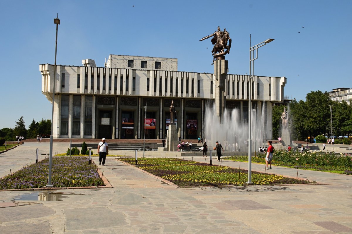 Máme skoro celý den, tak jdeme na prohlídku Biškeku. Začínáme na náměstí Ala-Too s fontánami, národním historickým muzeem a sochou kyrgyzského národního hrdiny Manase. Za náměstím je socha Lenina. V Biškeku je docela dost parků, nejbližší se jmenuje Dubovyj park. Parky jsou příjemné, dobře se pod stomy chodí. Tady jsou navíc i docela zajímavé sochy. Docházíme až k budově opery a pomalu se vracíme. Jdeme přes Pafilovův park, což je vlastně lunapark s kolotoči, autodromy a jinými pouťovými atrakcemi. Cestu končíme u budovy filharmonie a pak už se pomalu vracíme do hotýlku.