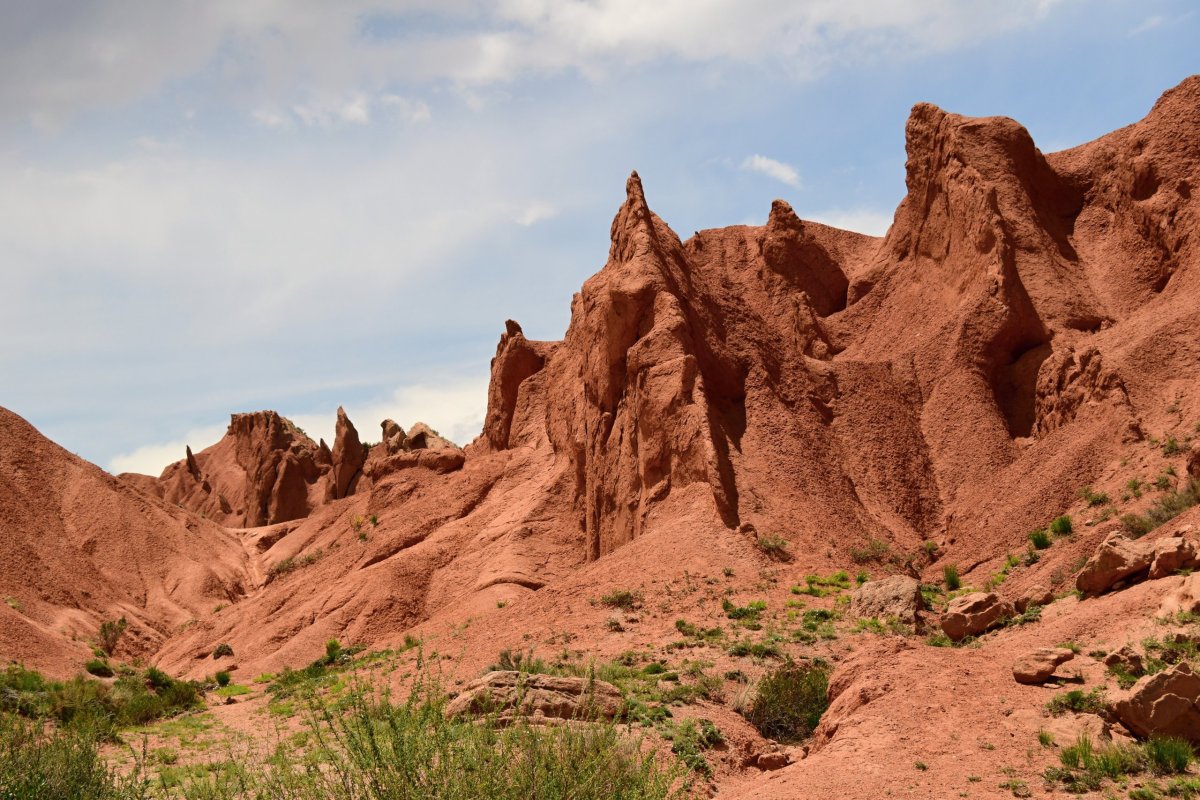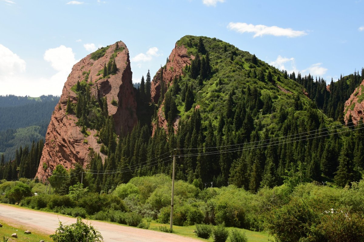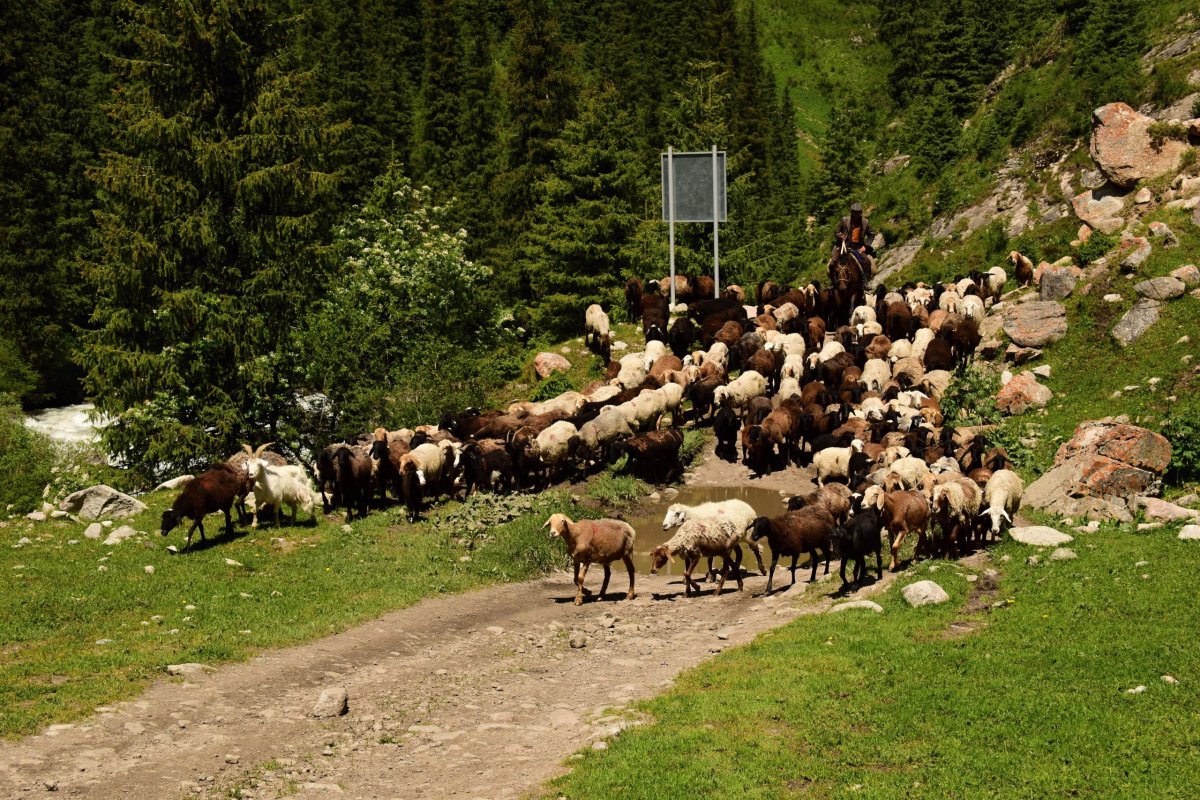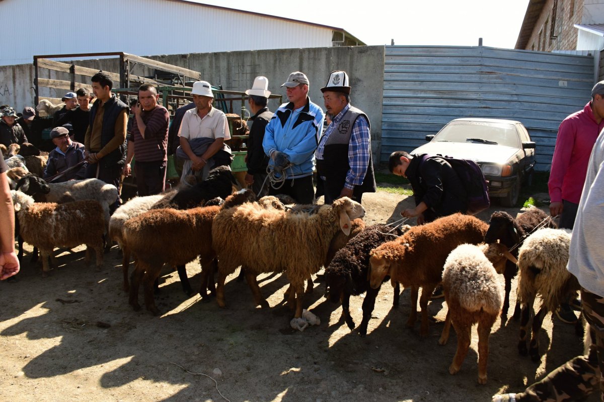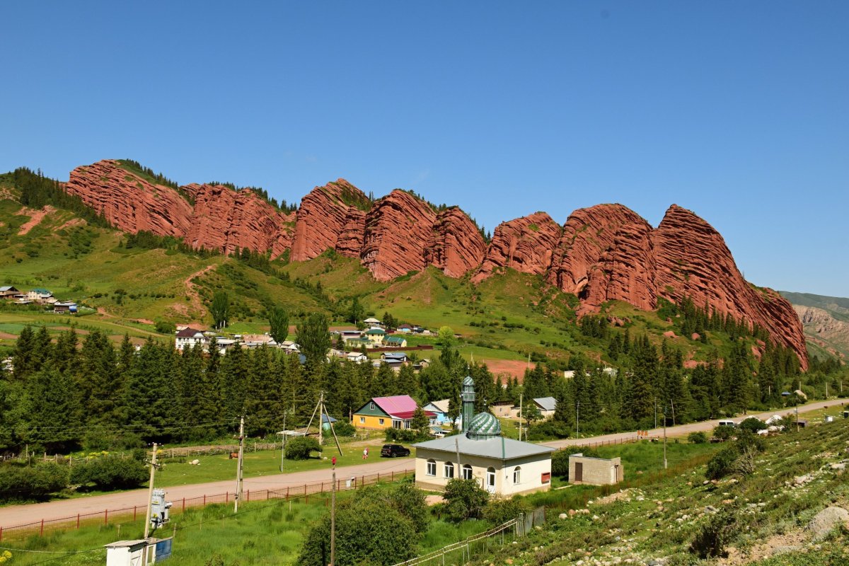 V neděli je v Karakolu zvířecí trh. Tak se jdeme samozřejmě podívat. Prodávají se tu zejména ovce, možná dál byla i jiná zvířata, trh je poměrně rozsáhlý, ale nechtělo se nám prodírat se mezi prodávajícími. Pak jedeme na skalní útvary Sedm býků a Puklé srdce. Vylézáme na vyhlídku, ze které je Sedm býků skvěle vidět. Pokračujeme po jižní straně jezera Issyk Kul. Silnice je o něco horší, než na severní straně. Čekají nás ještě další skalní útvary v kaňonu Skazka. Procházíme kolem krásných skalních formací, ale bohužel začíná pršet. Jdeme se schovat do auta, pršet však nepřestává, tak jedeme dál do našeho předposledního ubytování. Další den už dojíždíme do Biškeku. Cestou se zastavujeme u dvou hřbitovů. První je již nepoužívaný a je pozoruhodný tím, že na hrobech jsou symboly srpu a kladiva. Druhý je funkční, nicméně ve srovnání s našimi hřbitovy vypadá poněkud zanedbaně. V Biškeku vracíme auto a další den ráno odlétáme domů